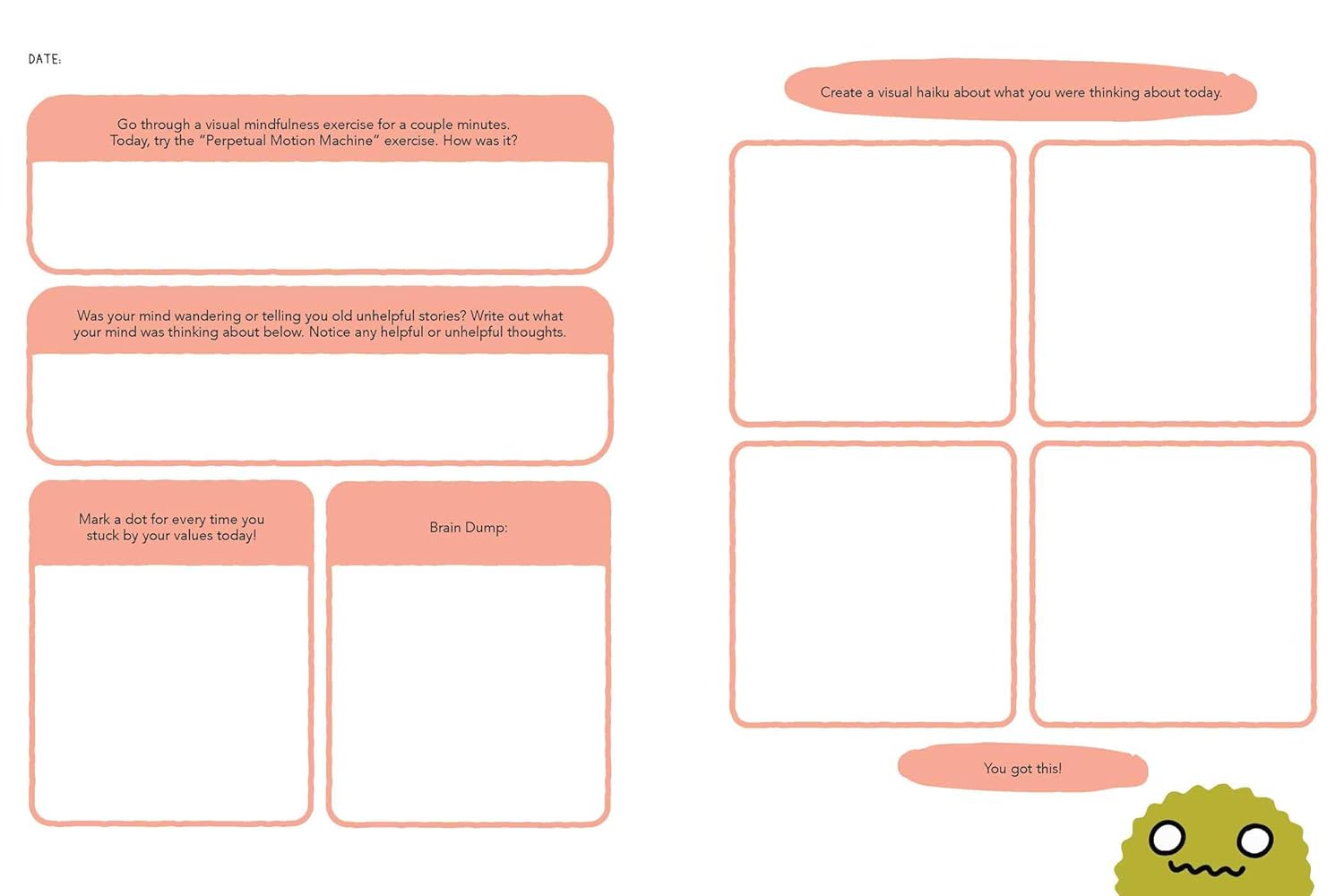 You’ll also find a series of emergency pages addressing some “worst day ever” scenarios for really, really bad days, as well as some creative mindfulness exercises!