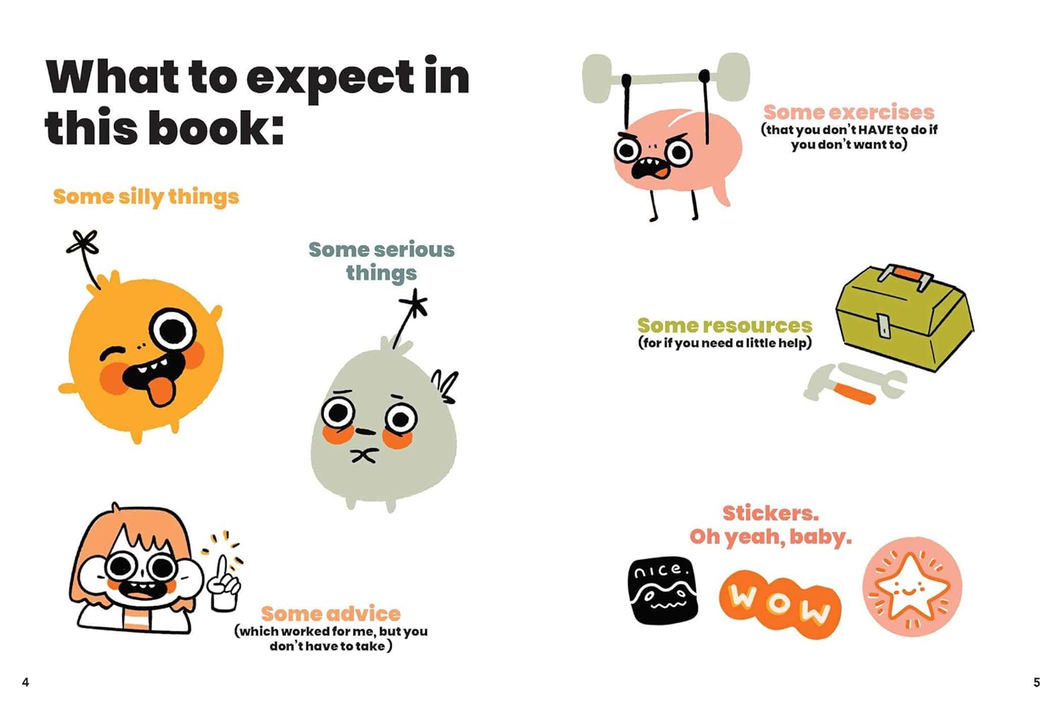 Keep anxiety and depression in check with tons of totally doable mental health tips and techniques included here. You’ll find some silly things, some serious things, some resources and exercises—oh, and a whole page of STICKERS to use throughout your journal.