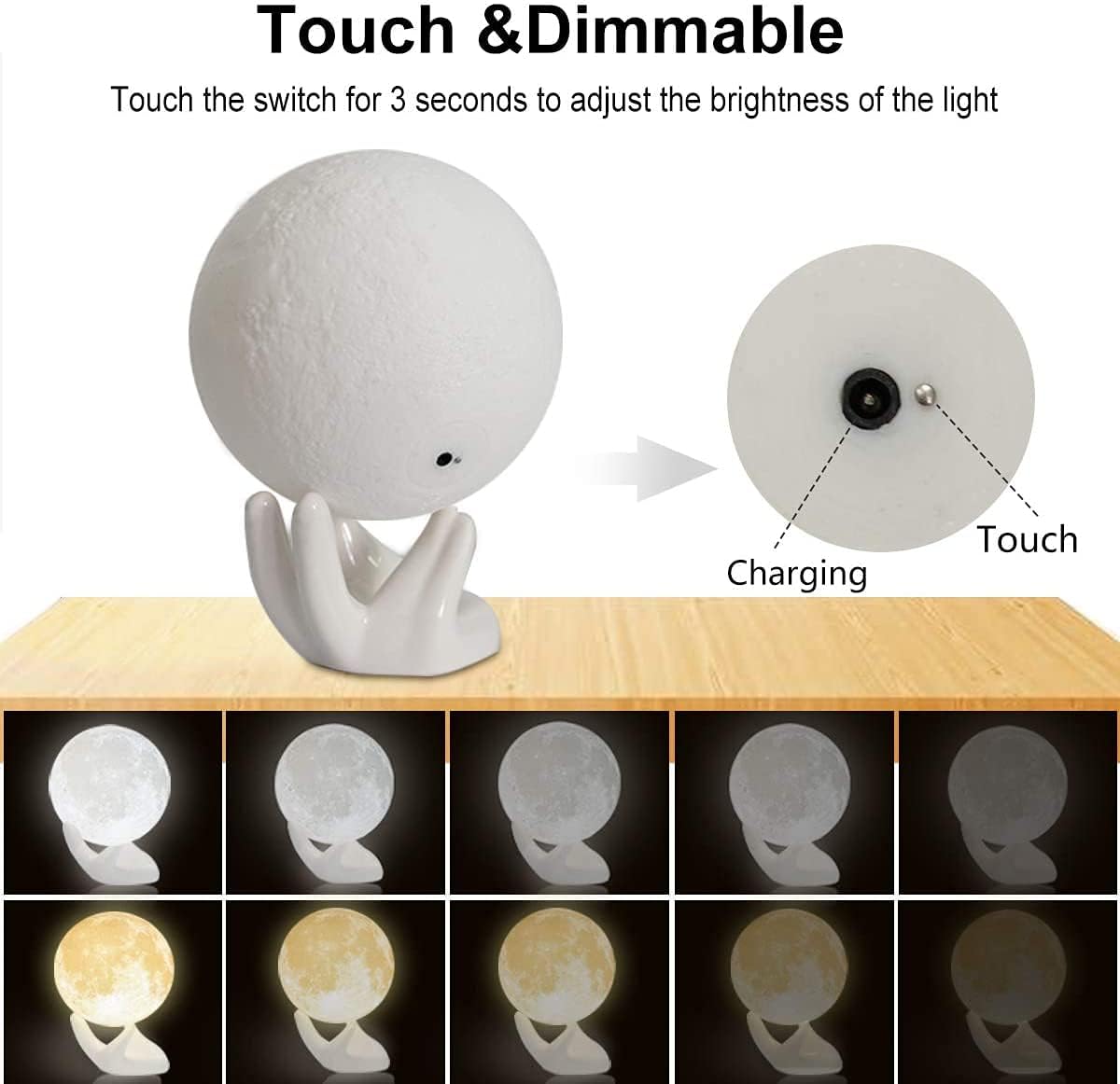 8 reviews for Mydethun 3D Moon Lamp with Ceramic Base, Gift for Lover, LED Night Light, Mood Lighting with Touch Control Brightness for Women,Home Décor, Bedroom, Kids Birthday, 3.5 Inch – White & Yellow