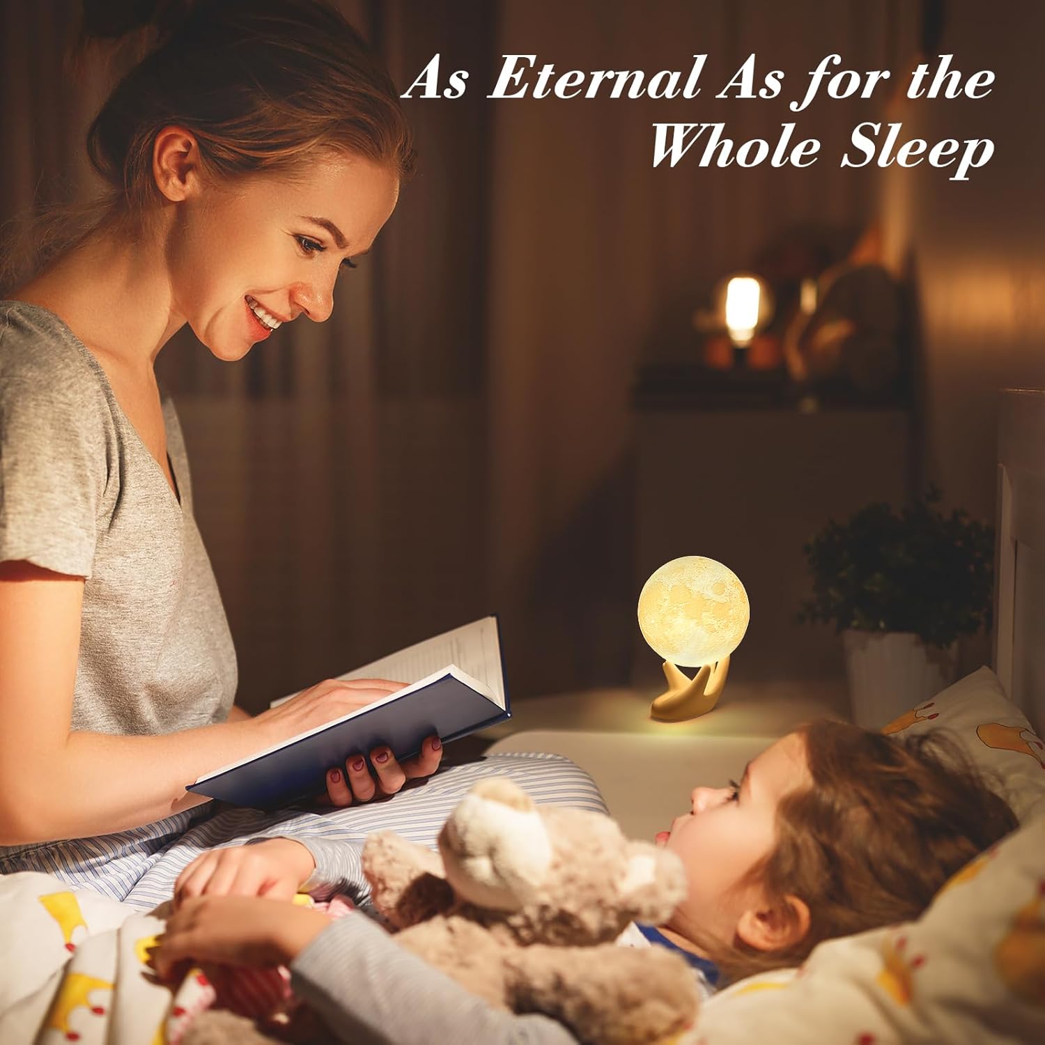 Dual-Color LED moon lamp with Customizable Brightness: Easily switch between lunar white and warm yellow lighting with a gentle tap, or adjust the brightness to create the perfect atmosphere for any occasion. Whether you’re setting up a cozy nook or encouraging your child’s curiosity about space, this lamp adds a personal touch to any room