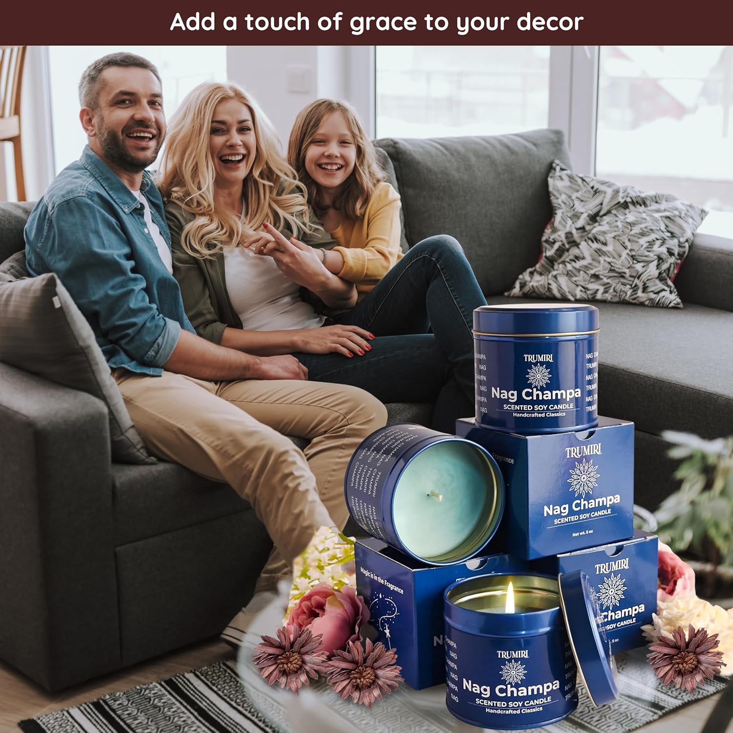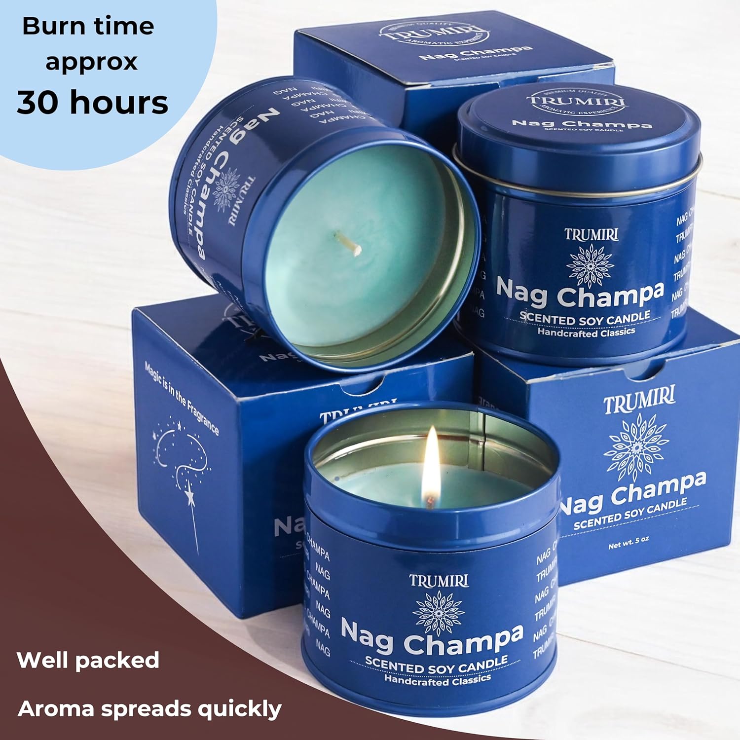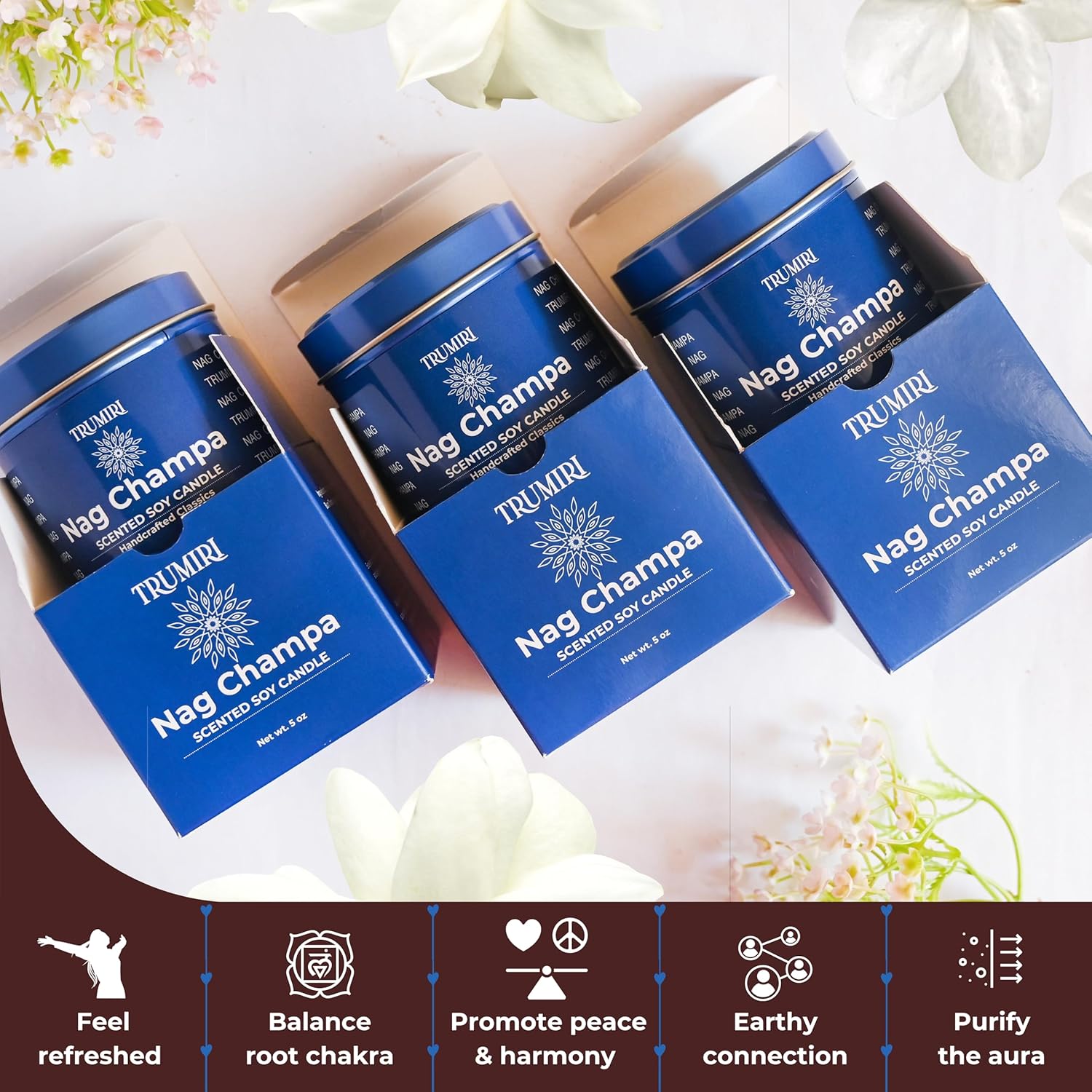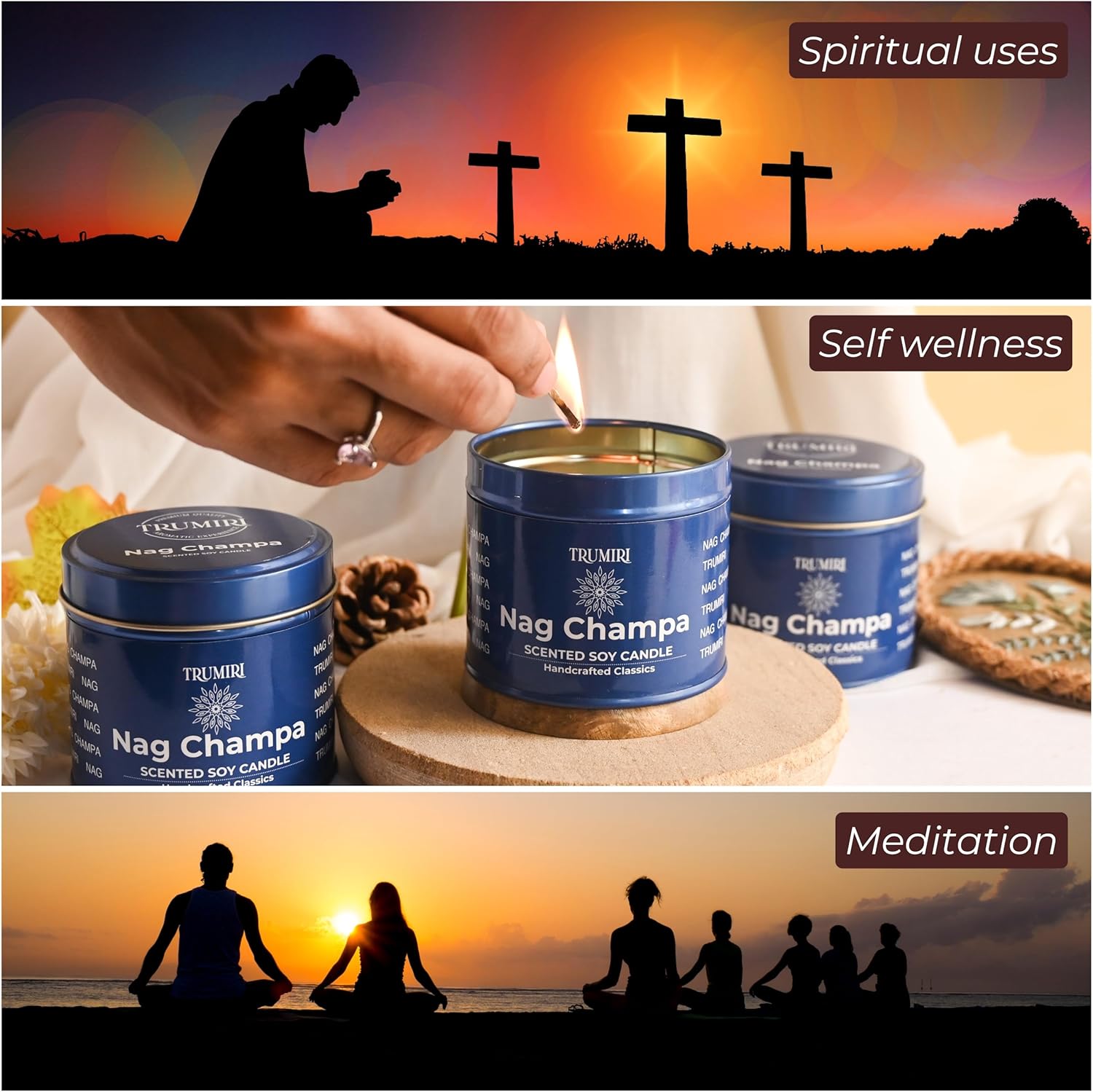 Nag Champa Candle for Home Scented – Pack of 3 x 5oz Natural Soy Clean Organic Non Toxic – for Aromatherapy Meditation Spiritual Gifts Bathroom Kitchen – Long Lasting Heavily Scented Velas Aromáticas