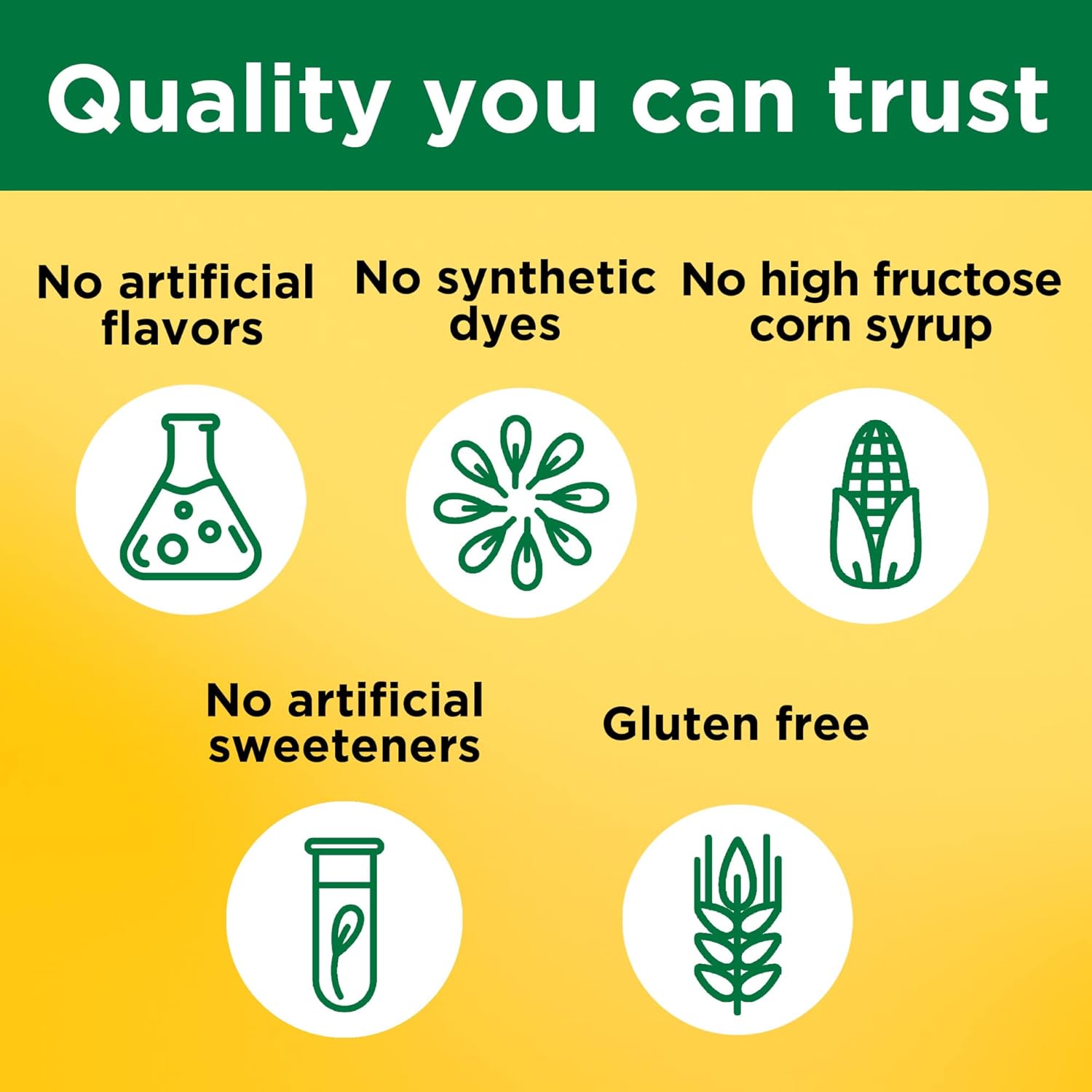 This gluten free multivitamin dietary supplement contains no artificial flavors, no synthetic dyes, no high fructose corn syrup, and no artificial sweeteners