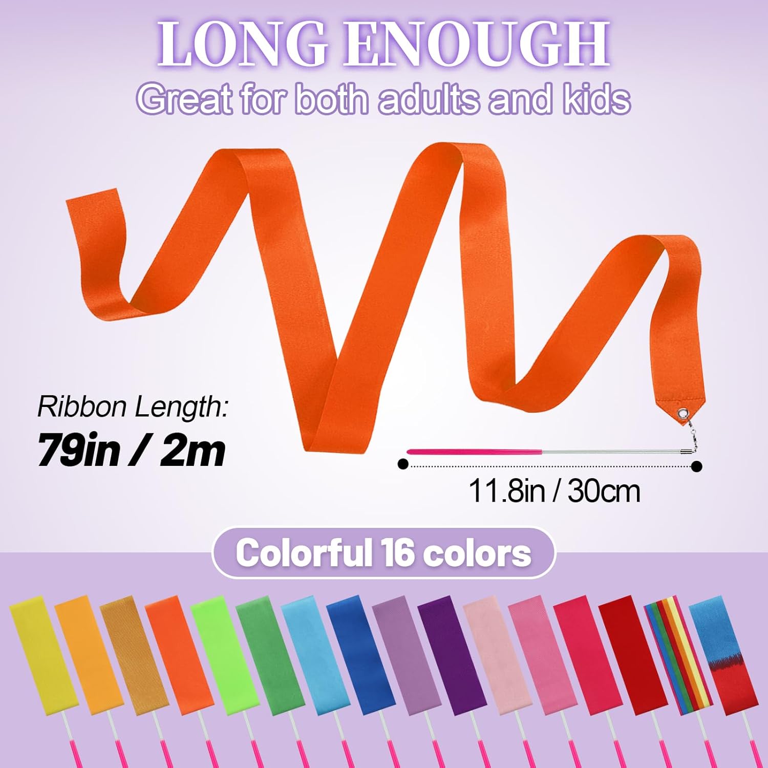 【Tips】This ribbon wand for kids adds elegance and beauty to gymnastics and dance, helping to maintain smooth and fashionable movements. While we do our best to capture the true color of the ribbons in our pictures, please note that the actual color may differ slightly depending on your personal display screen settings or reflecting light during photo shoots.