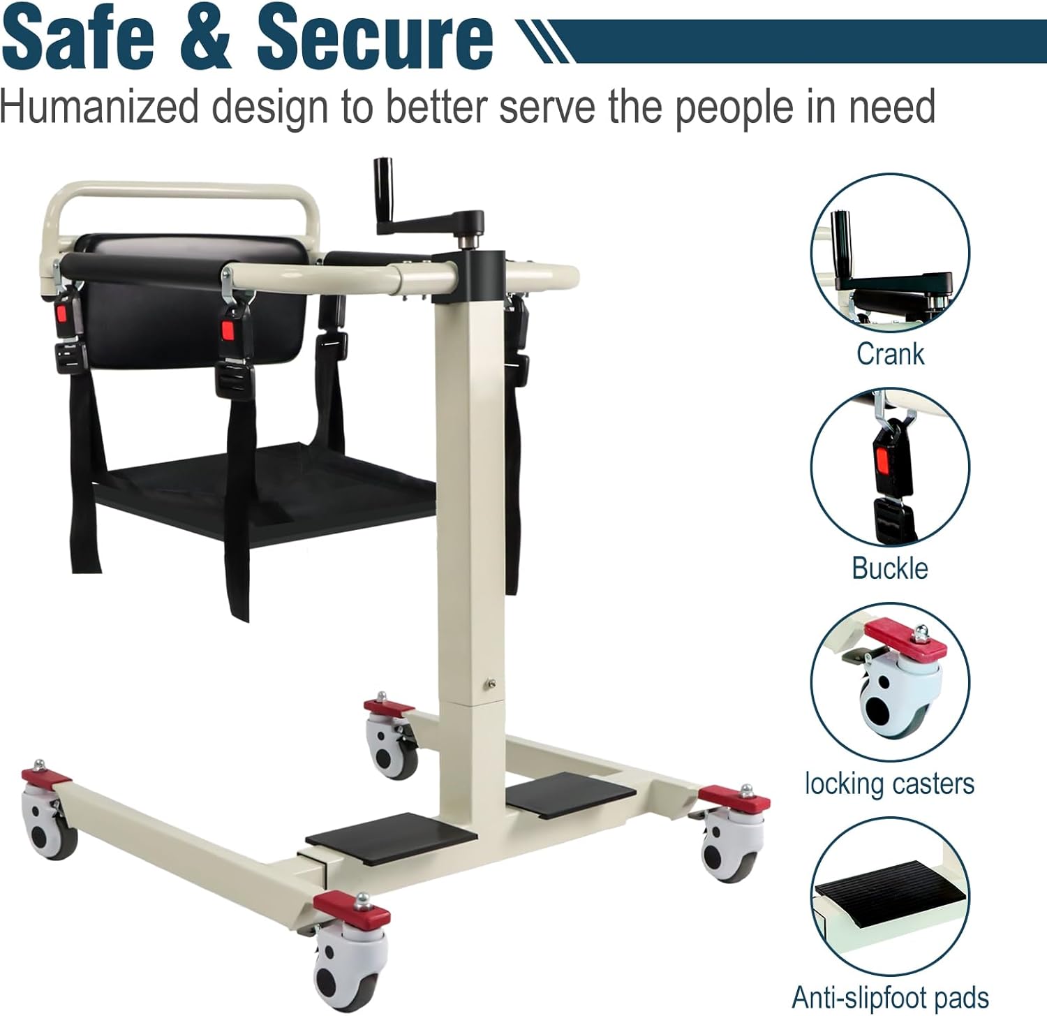Patient Lift Transfer Chair with Padded backrest, Shower Chair Lift for Elderly, Chair Lift Bedside Commode for Seniors
