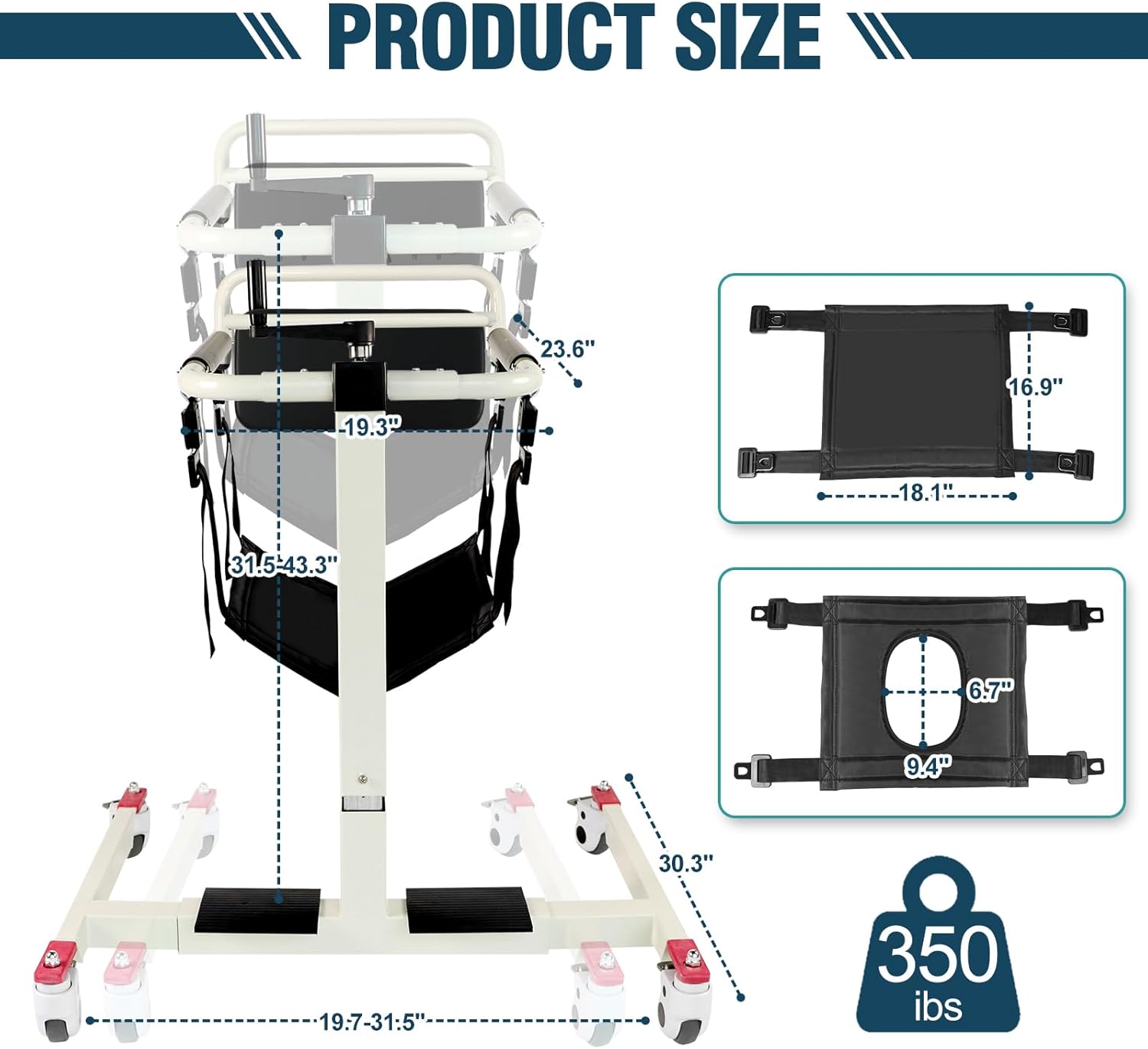 【Product Features】 This home patient lift features a crank-based height adjustment system, catering to different usage scenarios. The armrests are designed with soft padding for a more comfortable grip. The rubber foot pads provide enhanced slip resistance and durability, significantly improving safety. The breathable seat cushion, made from double-layer premium Oxford cloth, ensures prolonged comfort without fatigue. The detachable seat cushion allows for easy cleaning and maintenance.