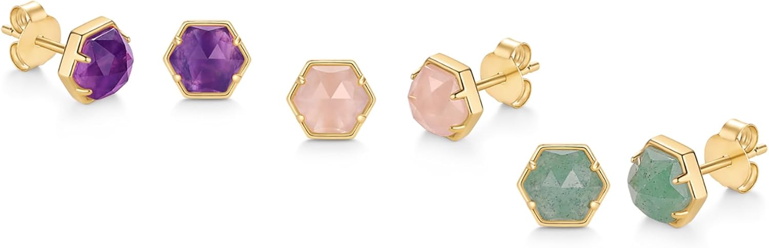 1 review for PAVOI 14K Gold Plated Hexagon Gemstone Stud Earrings for Women | Natural Birthstone Earring Pair