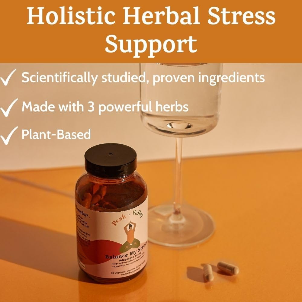 Peak + Valley Stress Relief Supplement for Mood Support Balance My Stress Capsules – Contains Adaptogens, Ashwagandha, Eleuthero Root, Reishi Mushroom Supplement – Natural Mood Stabilizer – 90 Ct