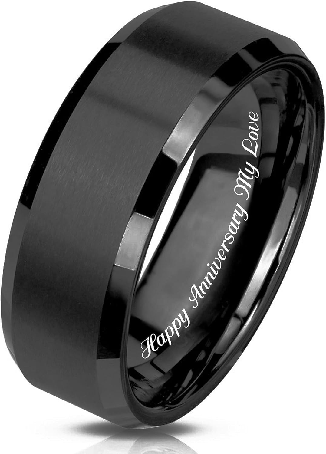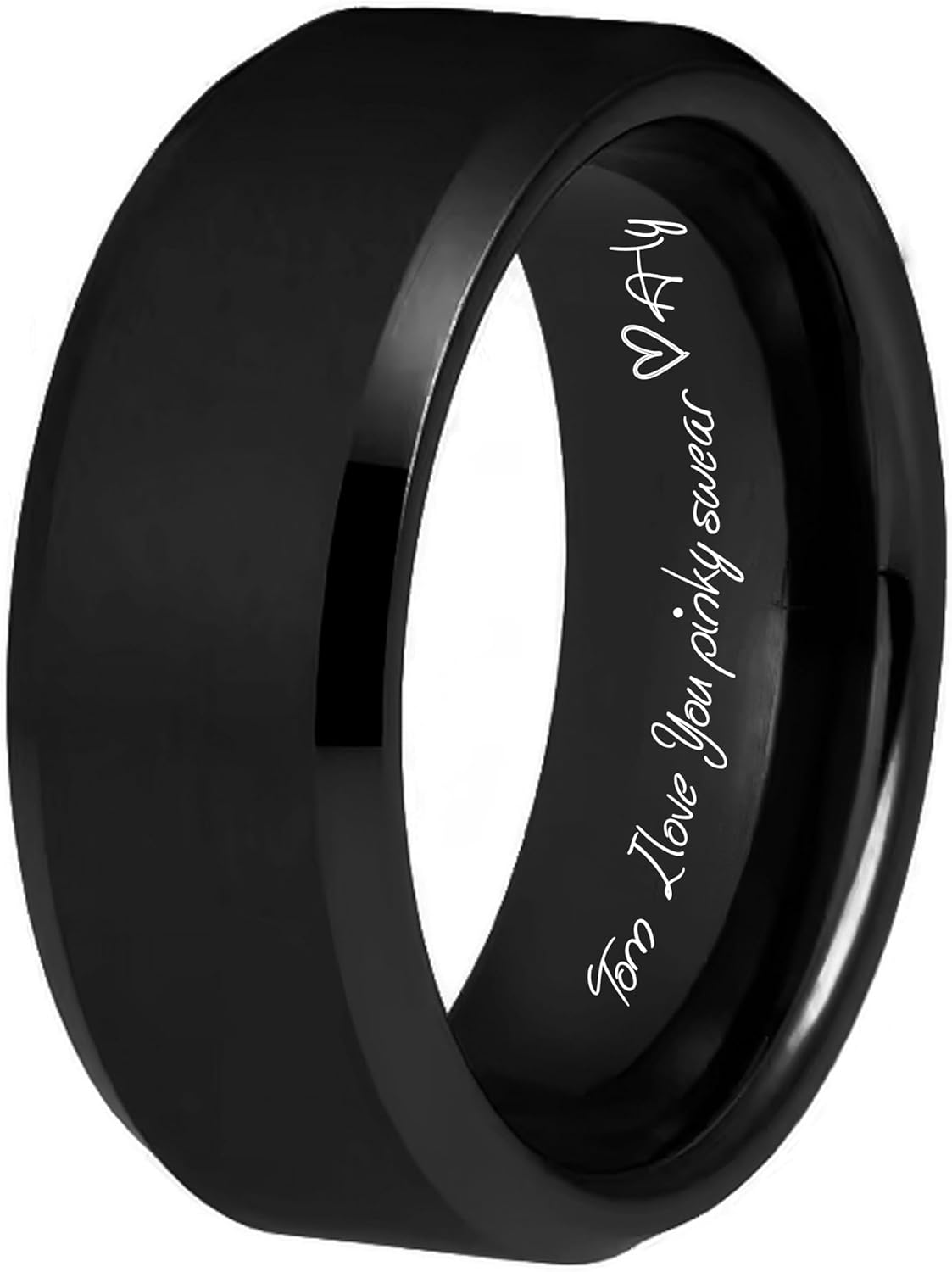 Personalized Black Brushed Men’s Tungsten, Custom Engraved Ring, Black Wedding Band, Fiancé Engagement Ring, 8mm Men’s Ring- Made in USA