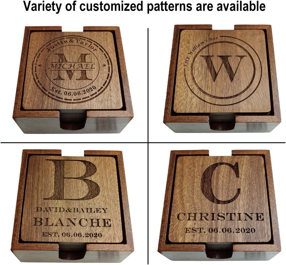 10 reviews for Personalized Monogram Coasters with Holder – Custom Engraved Wood Coasters for Drinks – Wedding & Parents Gifts