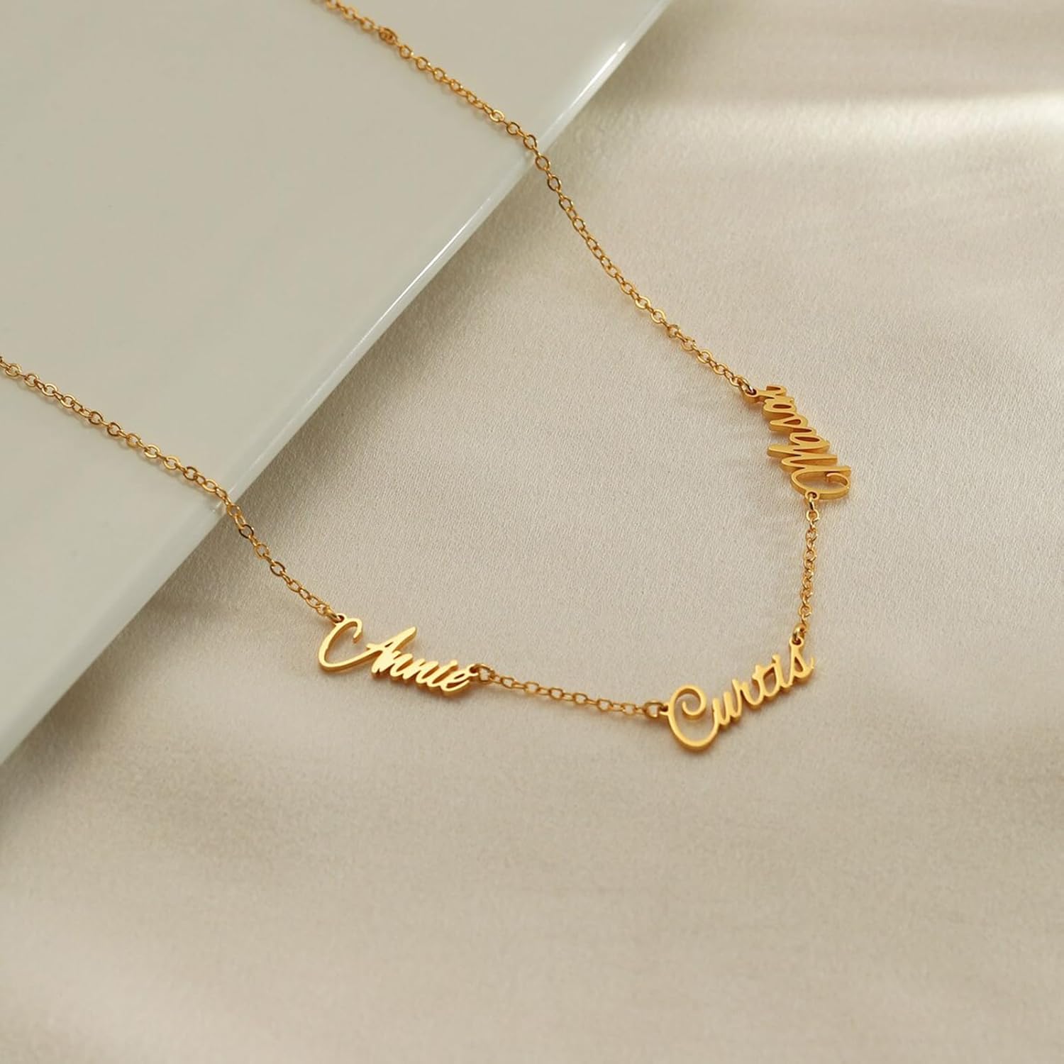 8 reviews for Personalized Name Necklace with Curb Chain, 18K Gold Plated Handmade Custom Family Choker Customized Child Nameplate Necklace Mother’s Day Jewelry Gift for Mom, Wife (3 Names Necklace)