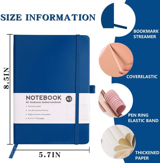 Package & Size: This journal notebook is 5.7 x 8.5 inches -96 sheets per book (192 pages).Designed with ribbon bookmark & elastic closure band&elastic pen loop.