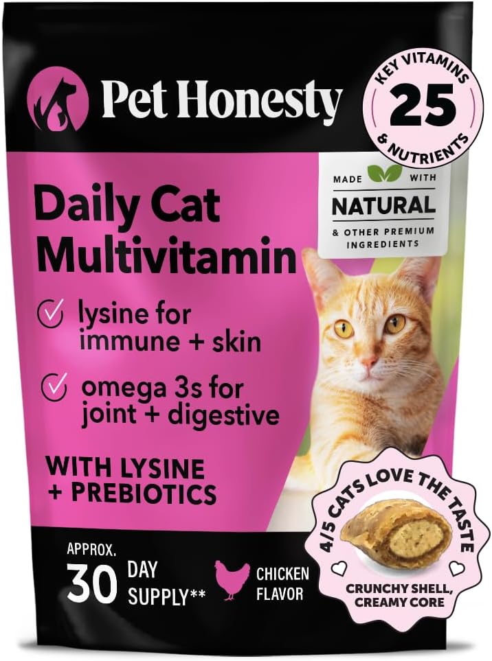 Pet Honesty Cat Multivitamin Crunchy & Creamy Chews – Cat Treats for Health + Immune, Joint Support, Skin & Coat, & Digestion – Vitamins with Omega 3s, Lysine & Probiotics (30 Day Supply)
