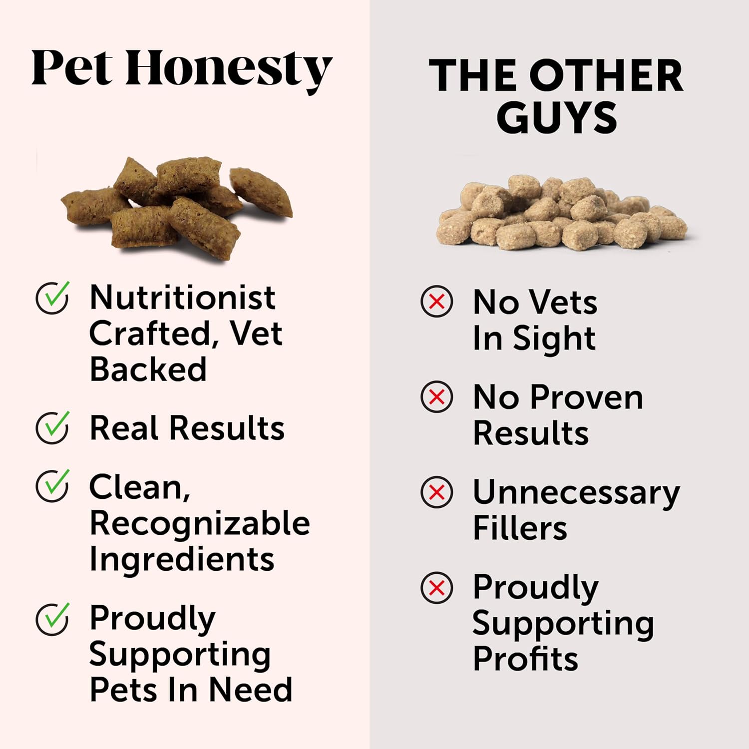 Pet Honesty Pledge: A taste your pet will love and results you can trust. Made with the most effective natural and premium ingredients. Formulated without corn, wheat, or soy. No artificial preservatives, colors, or flavors.
