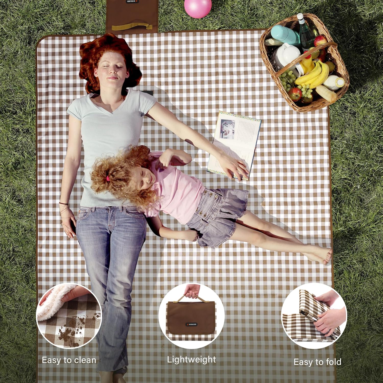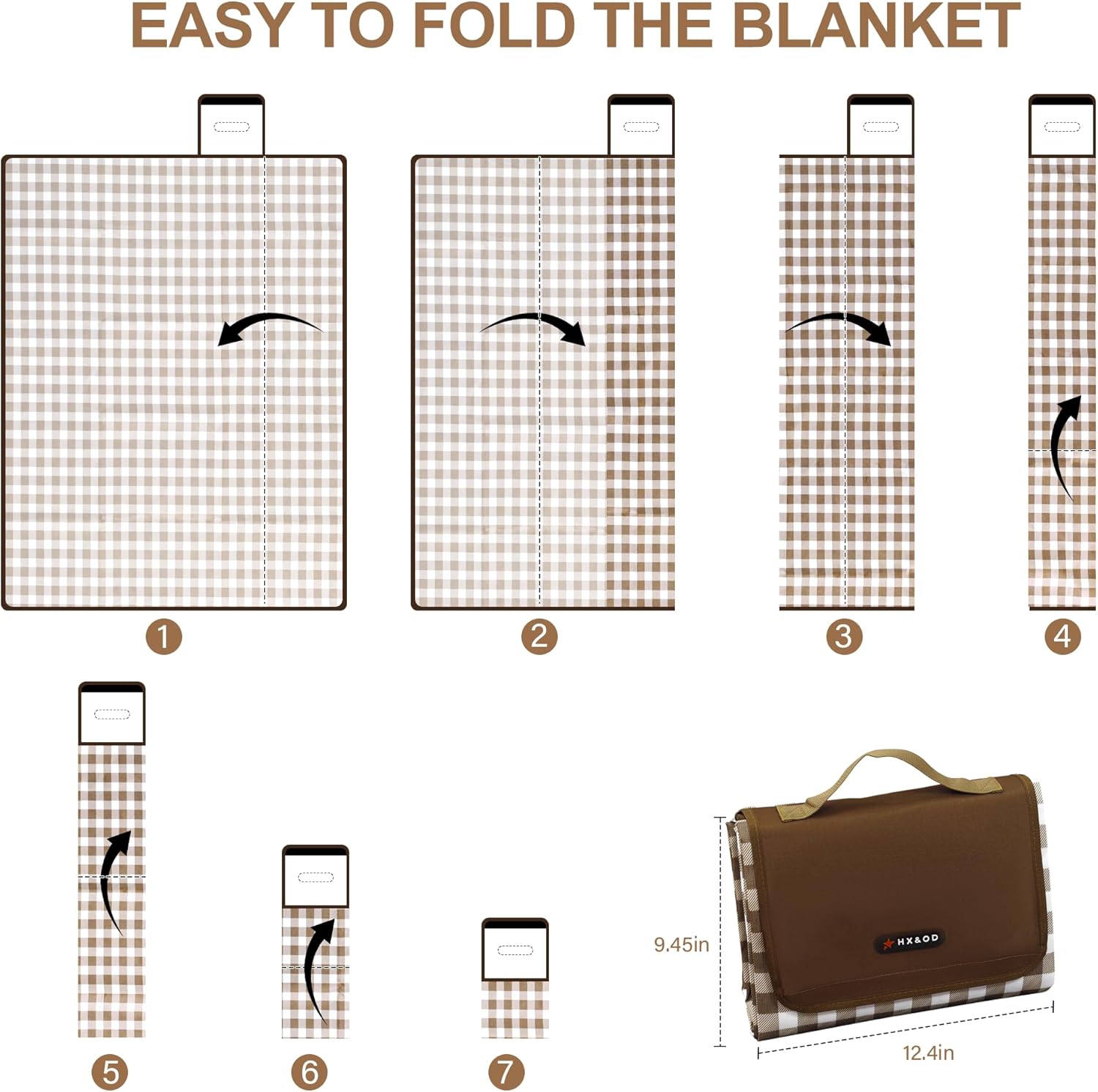 【Foldable and Lightweight Camping Blanket】The picnic mat is folded up to the size of a book so you can easily carry it out (folded size: 12*9 inches).