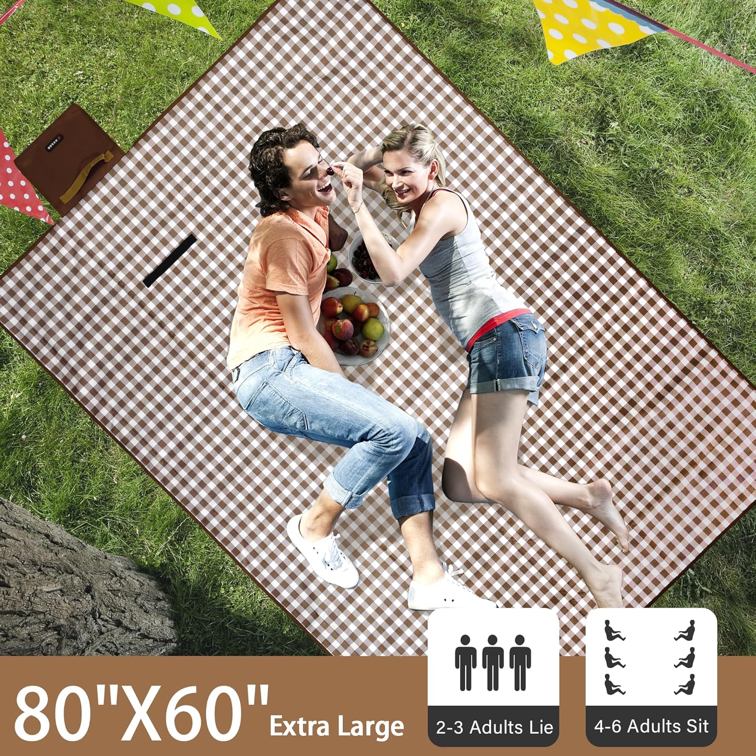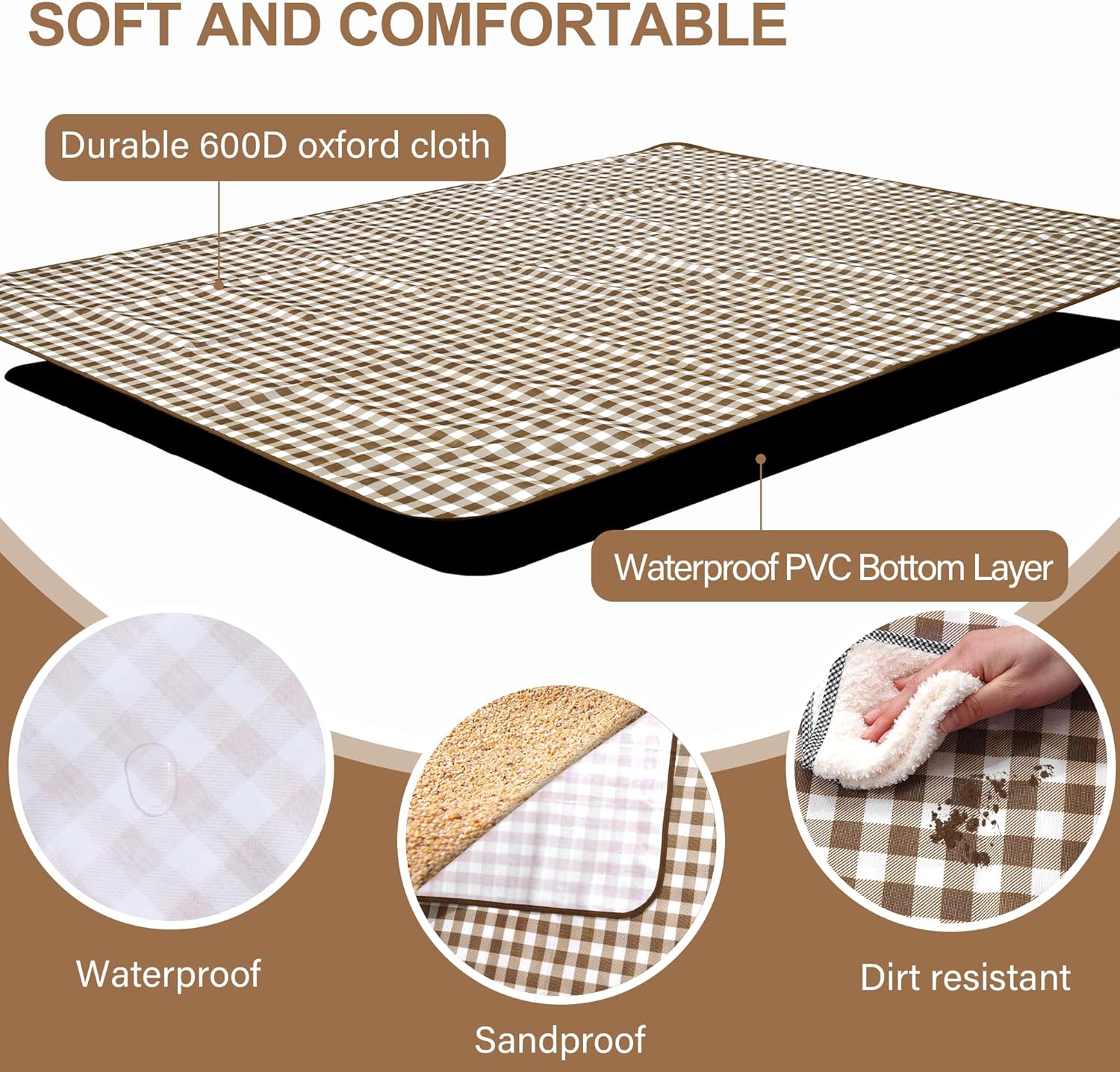 Picnic Blanket Outdoor Extra Large Picnic Mat 80″X60″ Camping Blanket Beach Blanket Foldable Waterproof Sand Mat Hiking Travel Family Concerts(Brown)