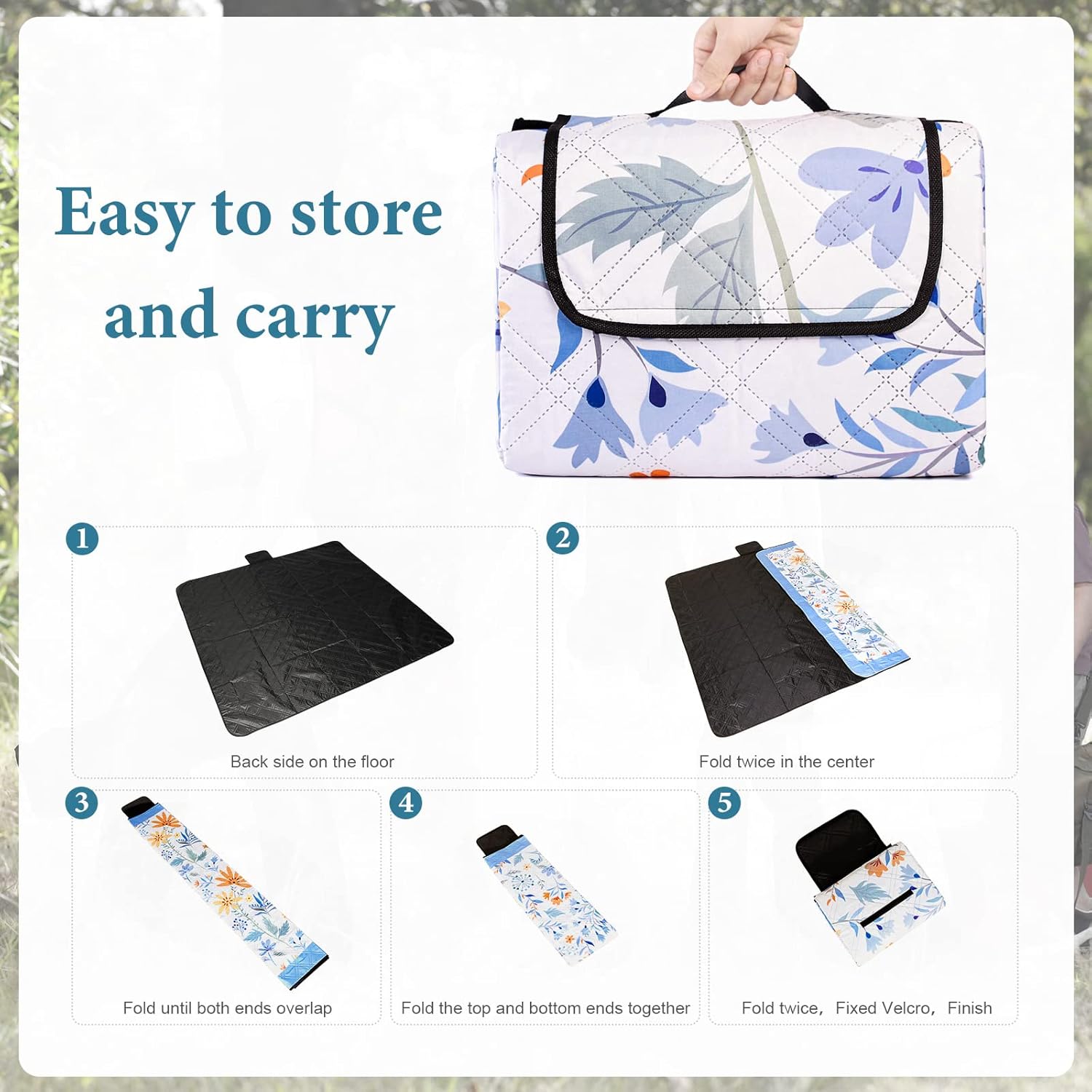 Machine Washable Outdoor Picnic Blanket: The improved version of the bottom material in 2023 is tear-proof, and can be used on the beach and on very hard stones(The cracked bottom picture in the review is an old 2022 model). Machine washable, ensure a clean picnic blanket without affecting the lifespan of the picnic blanket.