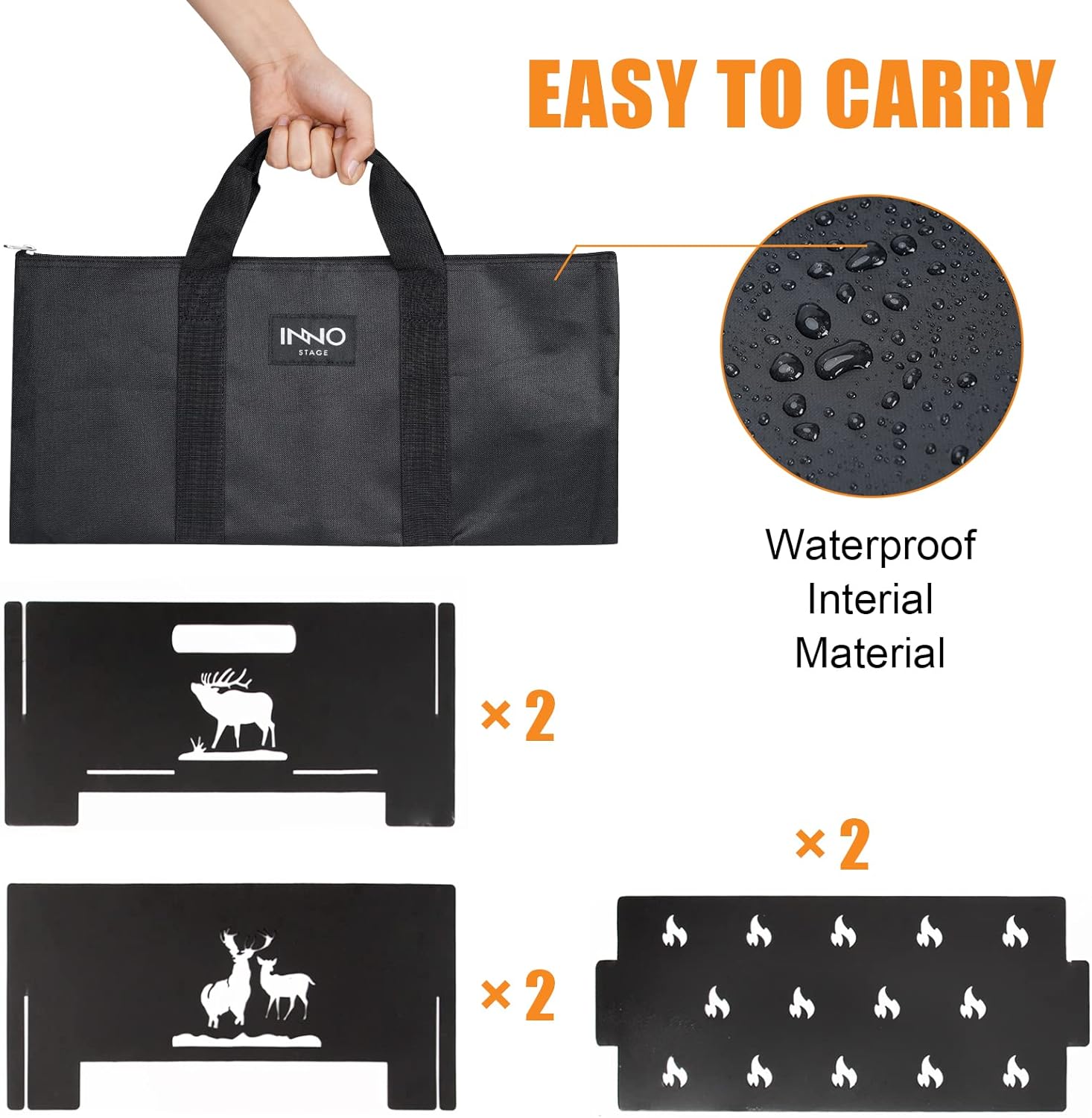 Wood Burning Fire Pit from INNOSTAGE has eye catching decorative deer pattern. This square fire pit will fit right in with all of your backyard accessories or outdoor camping. A portable carrying bag is included, making it easy to carry it to anywhere you want.