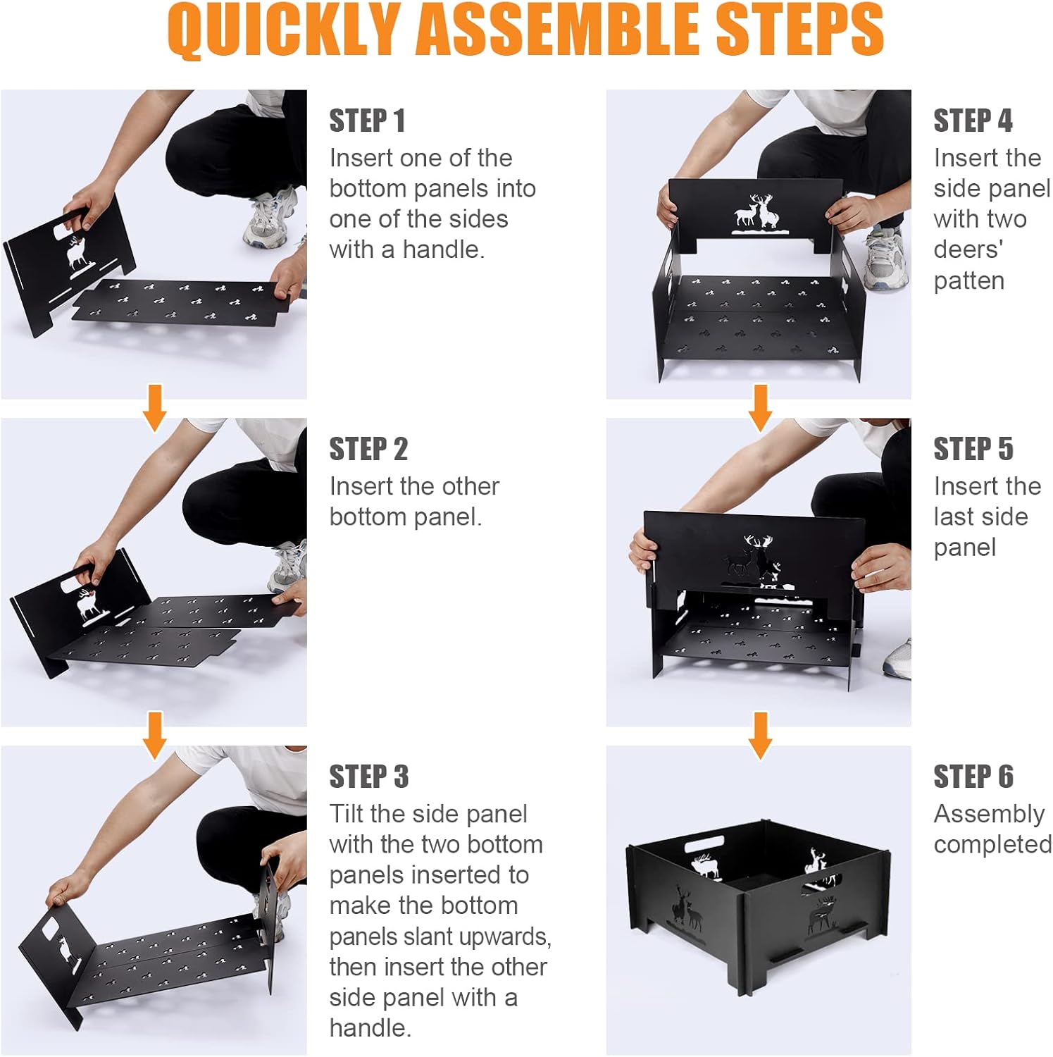 Unique Fire Pit for Outdoor Camping with slot design, portable and easy to use Easy assembly, basically just slots together. Portable with handle holes and waterproof lining carrying bag. Sturdy and durable 2.5 mm steel construction.