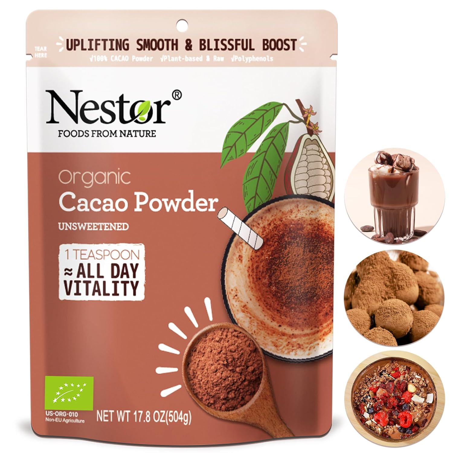 [Great Investment] If you are seeking the most natural and wholesome healthy organic cacao powder unsweetened for yourselves and your families. The Nestor Superfood Series are found right here. Customer satisfaction is our priority. We are at your disposal for questions and suggestions. Try Nestor organic non-alkalized raw cacao powder 17.8 oz (504 g). You can rest assured that you get the value for yourself. Just grab it now!