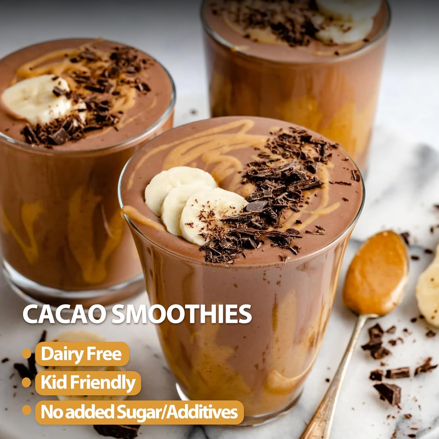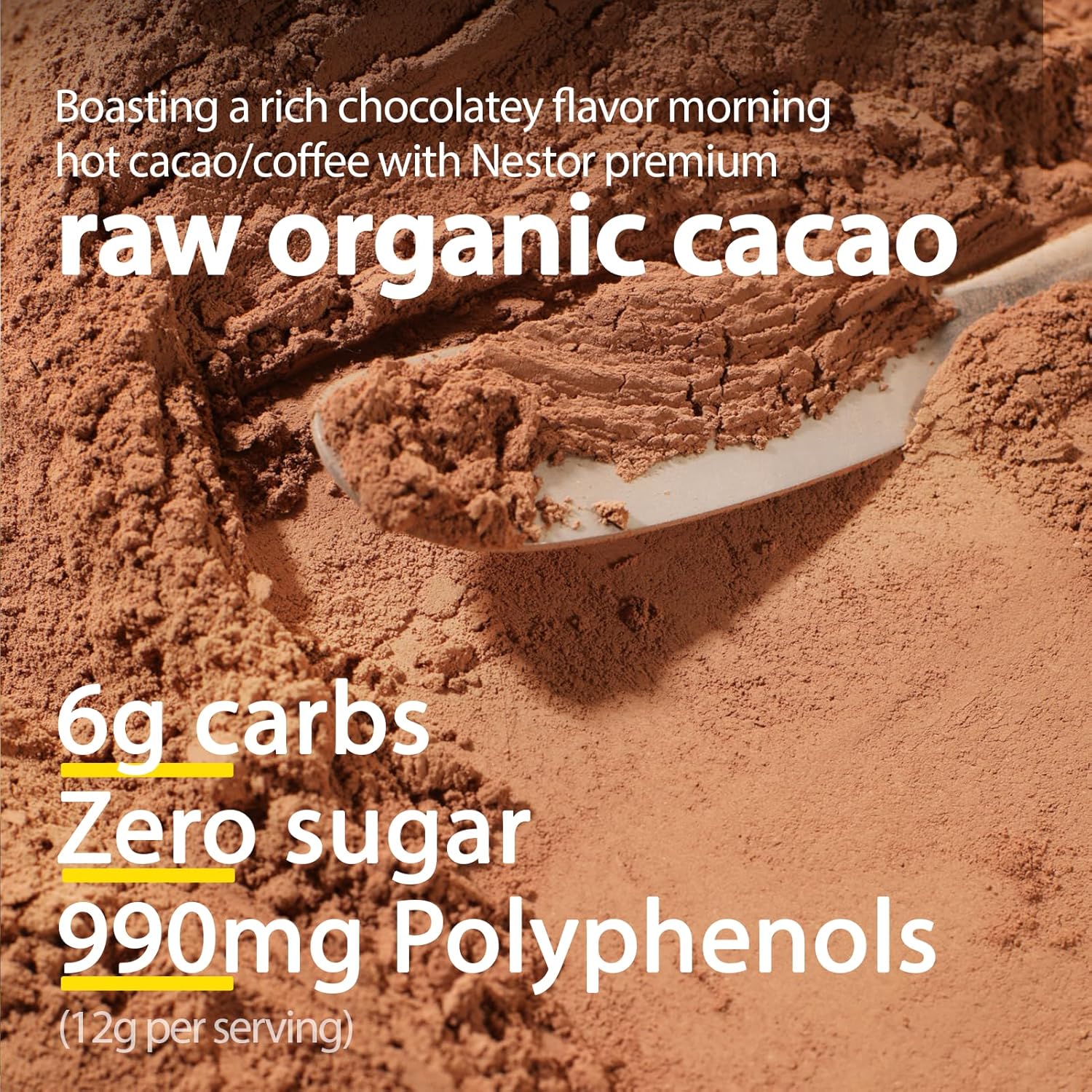 [Nutrient-dense] Nestor unroasted ceremonial cacao powder preserve up to 98% of natural cacao nutrients: theobromine, protein,vitamins and magnesium,including intense great chocolate taste. The smooth and silky organic cacao powder comes in light brown color without clumps or grittiness and has a rich dark chocolate aroma by natural. Awaken your senses with Nestor premium organic hot cacao chocolate drinks.
