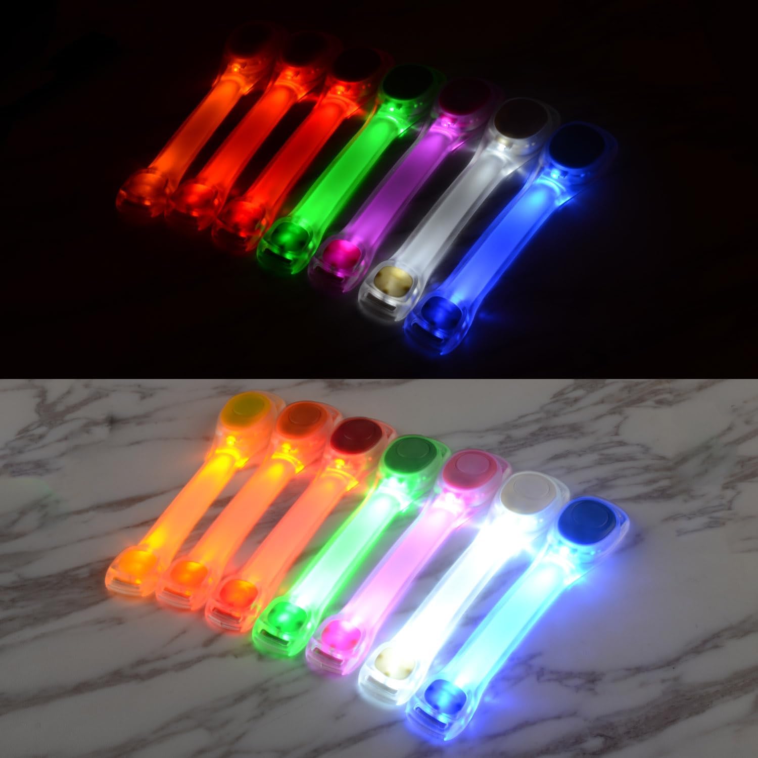 This safety walking lights are made from different soft polymers. Running gear in extremely light, nice to touch and amazing flexible. Change the light between steady mode and flashing light with just 1 click, velcro strap is very adjustable and has extra reflective strap, it is a PERFECT GIFT for your FAMILY and FRIENDS, making their life fun and easy; Most important for parents, it makes sports fun and attractive for children