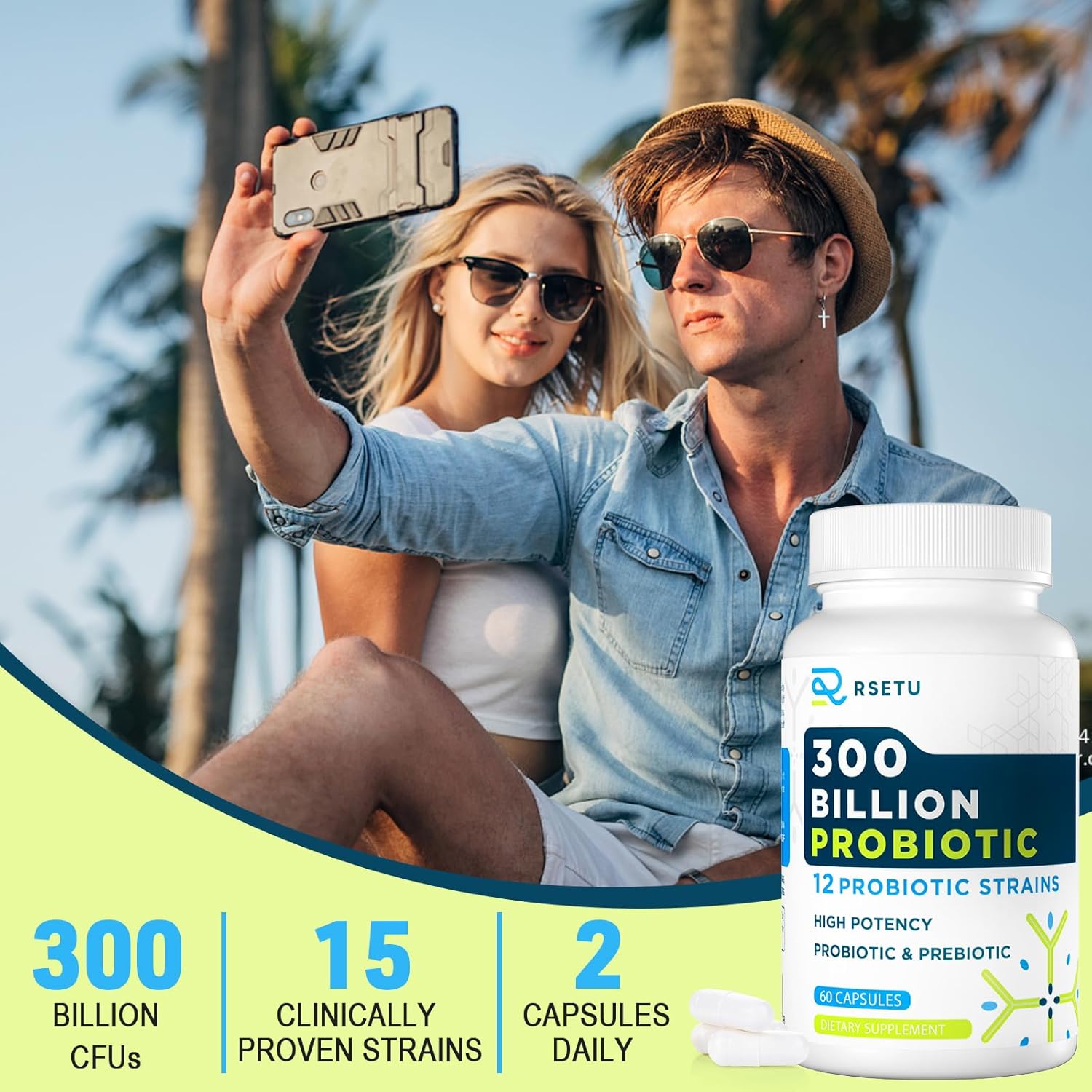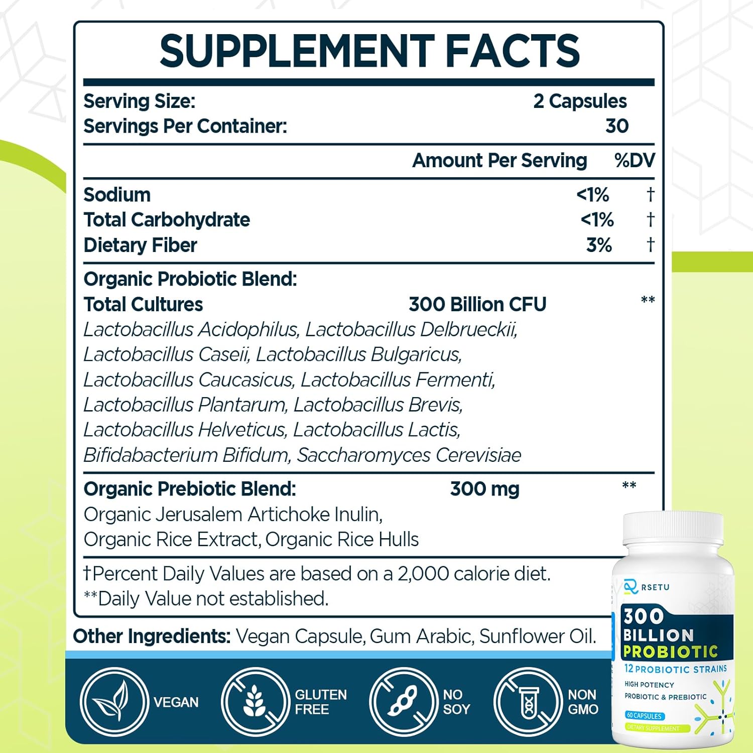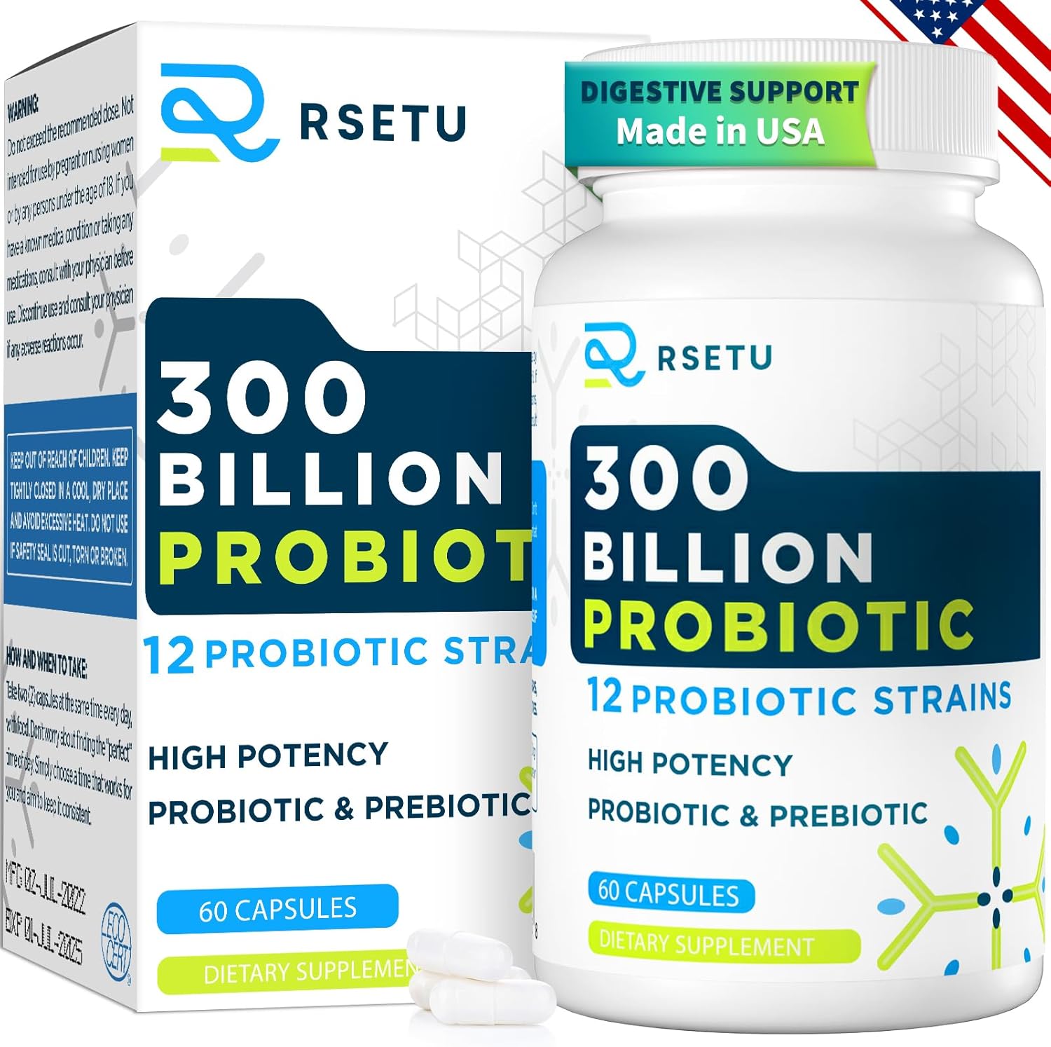 Highly Potent Probiotic Blend: Contains 12 proven probiotic strains and 3 prebiotics; each capsule delivers 300 billion CFUs; suitable for men and women; supports gut health, digestion, and immunity; recommended 2 capsules daily for comprehensive benefits
