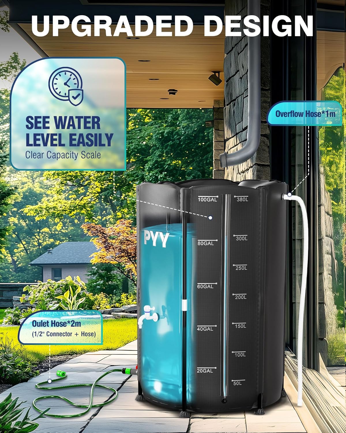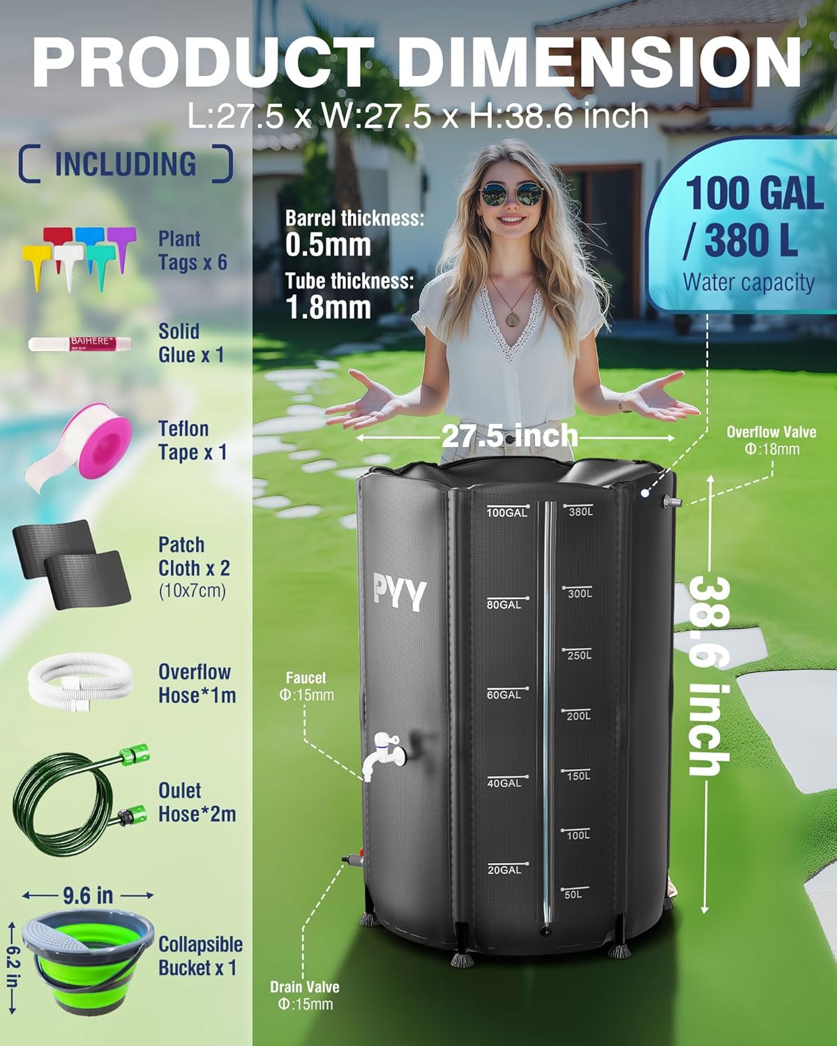 1 review for PYY Rain Water Collection Barrel – 100 Gallon Black Water Storage Tank with Spigots, Hose and Portable Bucket, Large Plastic Collapsible Rain Catcher Catchment System to Collect Rainwater from Gutter