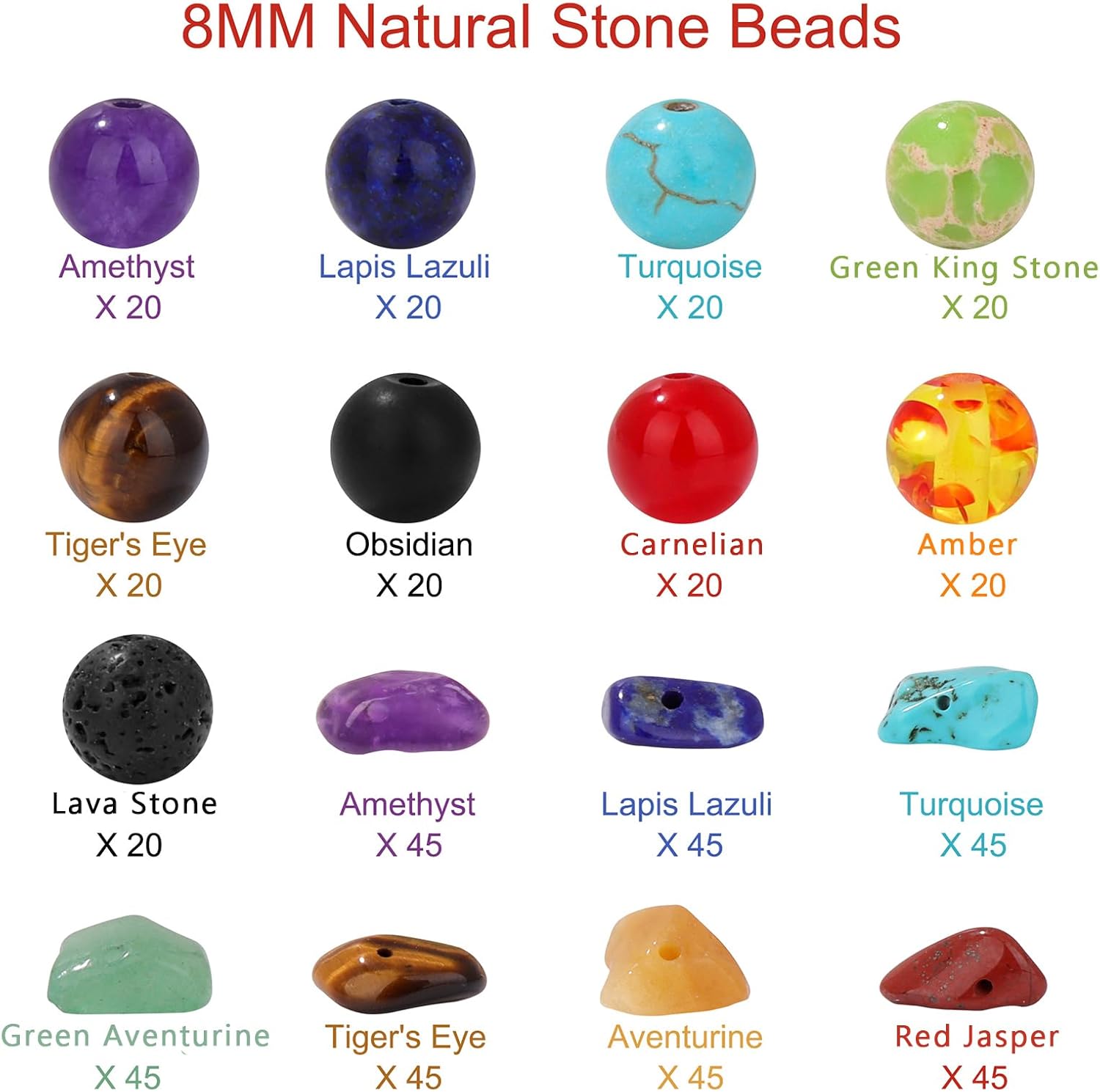 909 Beads for DIY:180pcs 8MM 7 chakra crystal round beads and 315pcs irregular shaped stone beads,594 spacer beads/accessories.Brilliant and gorgeous,suitable for most DIY jewelry making or handicraft creation.