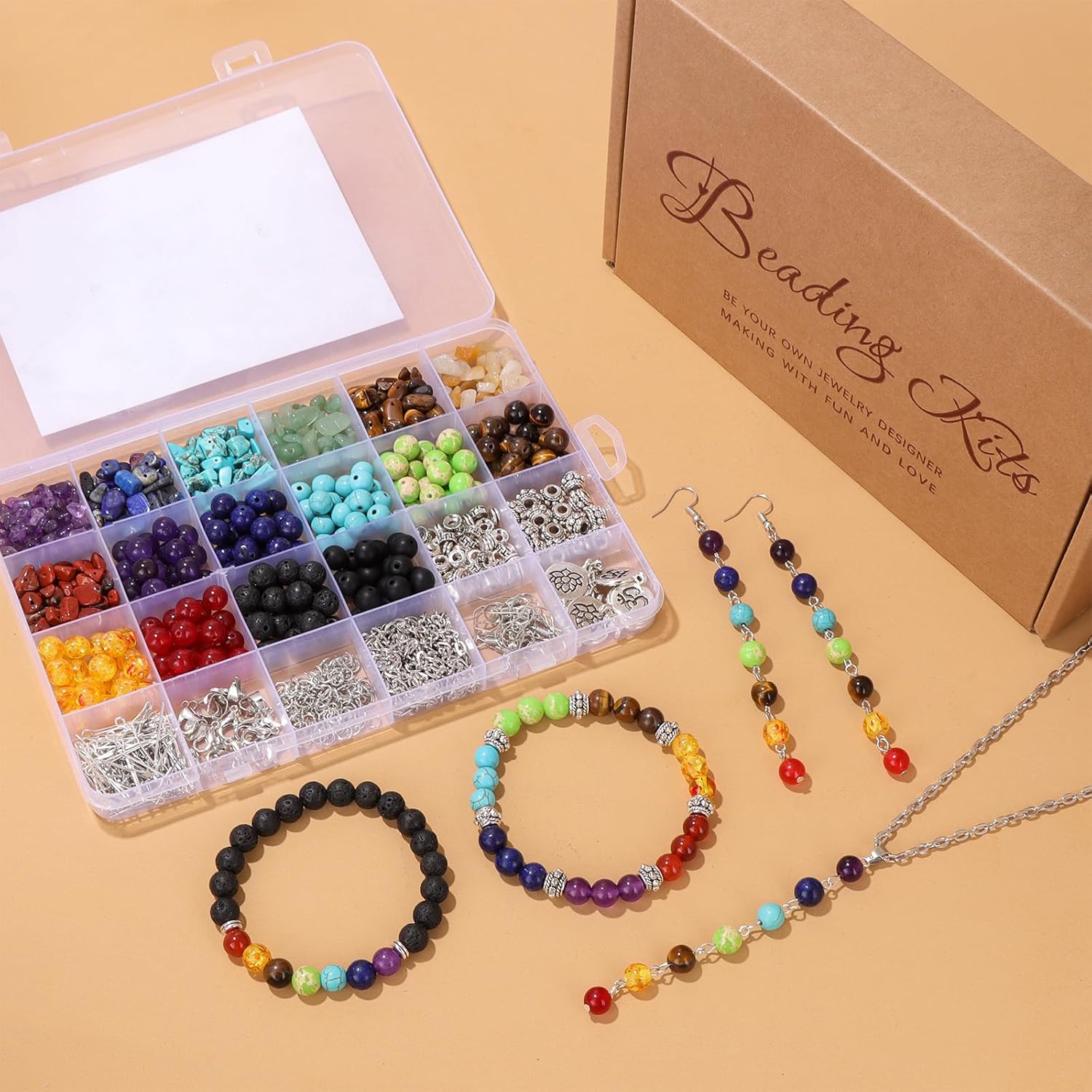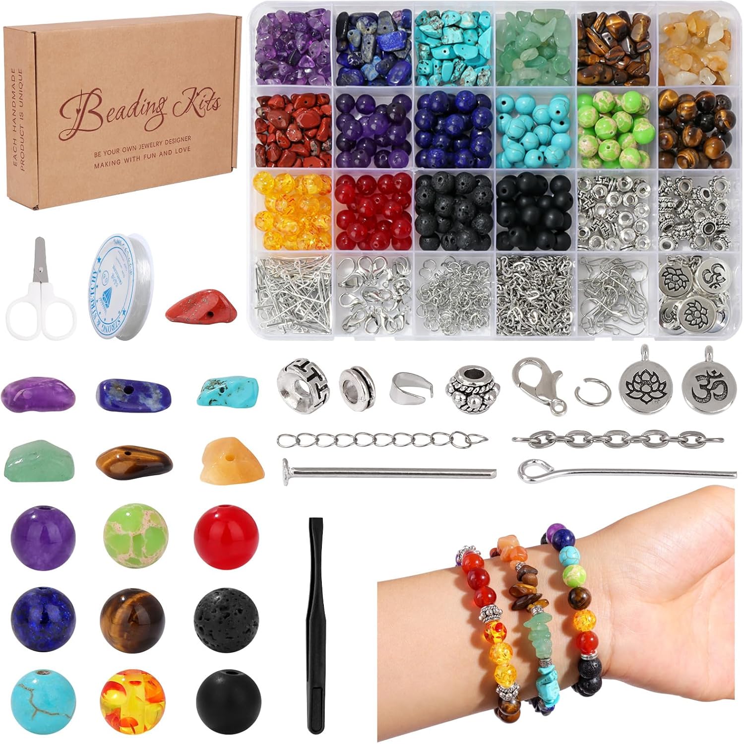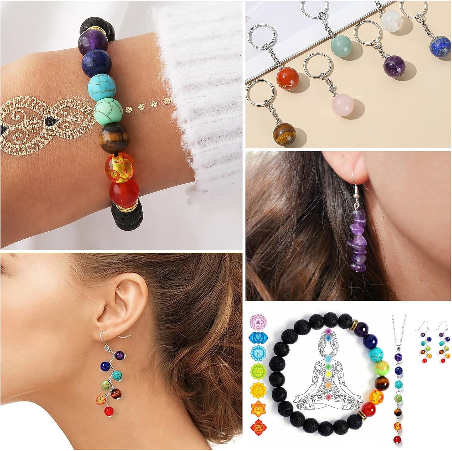 Raicegs Chakra Beads for Jewelry Making Real Natural Stone Beads for Bracelets Making Kits Healing Crystals DIY Gemstone for Necklace Earring Making