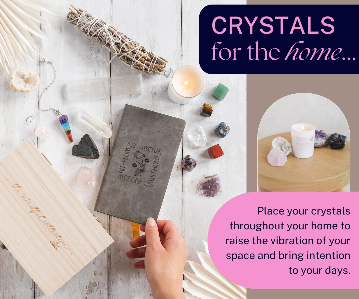 RECEIVE OUR DOWNLOADABLE e-GUIDE – New to a crystals practice? Our e-guide shows you step-by-step how to use your crystal collection. Get your Mindful Collective Healing Crystals Set today, and start cultivating greater peace and balance in your life.