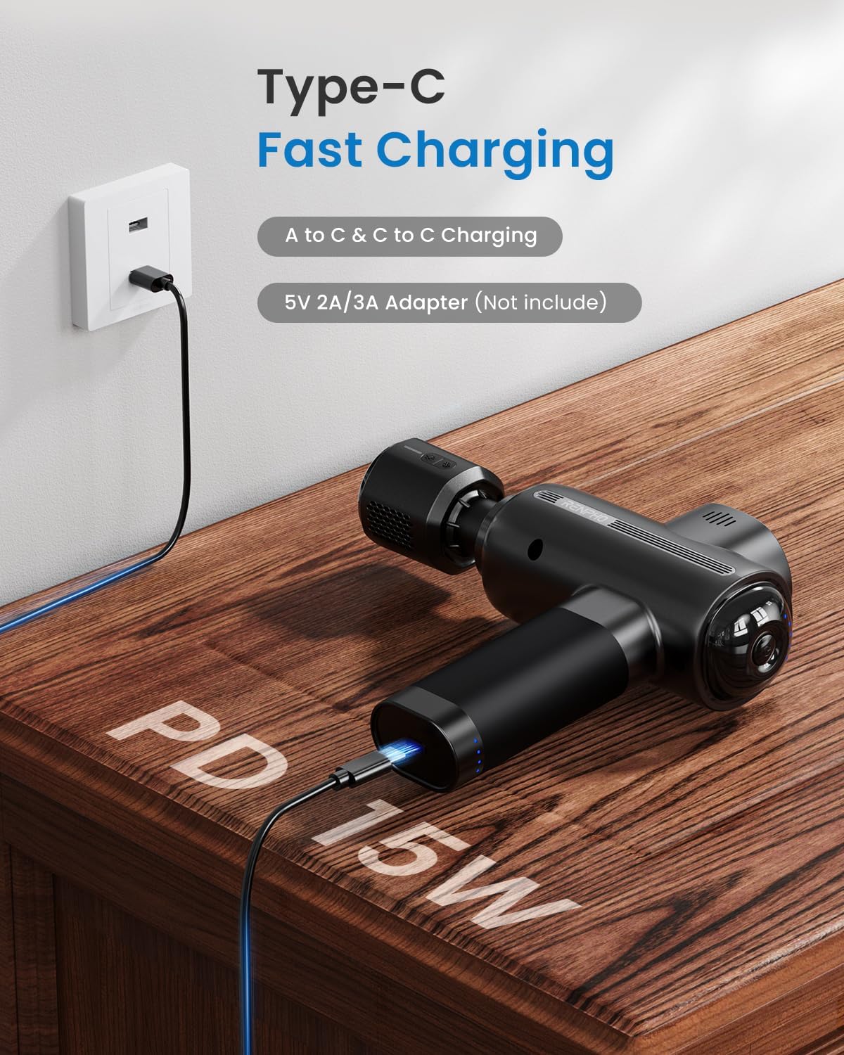 Powerful Percussion Massage Gun Deep Tissue: With premium metal housing and a super powerful brushless motor, the muscle massage gun delivers depth high penetration reaches and massages muscle tissue 10mm depth, better-relieving muscle fatigue and pain