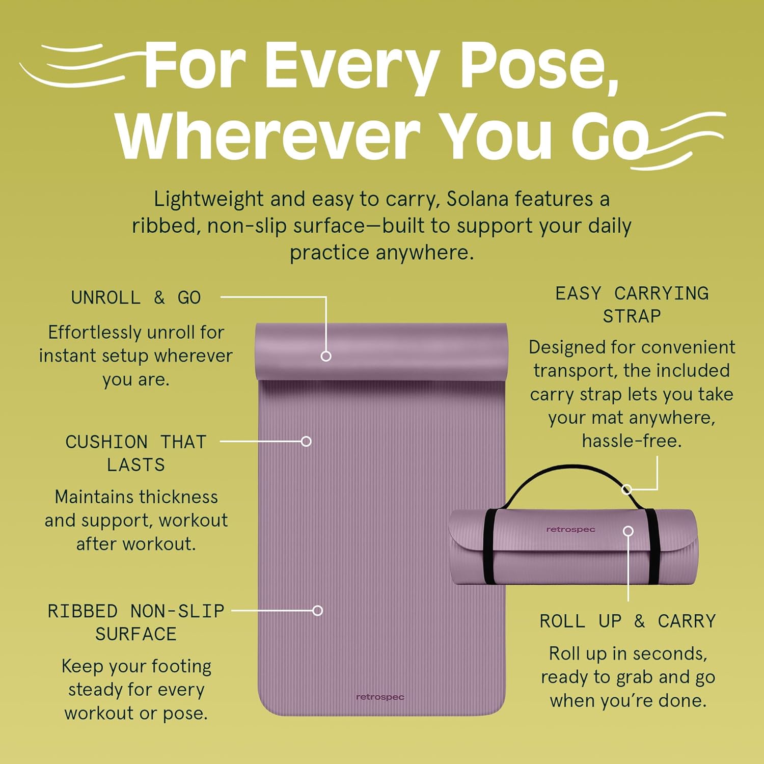 Retrospec Solana Yoga Mat 1″ Thick With Nylon Carry Strap for Men & Women – Non Slip Exercise Mat for Home Yoga, Pilates, Stretching, Floor & Fitness Workouts