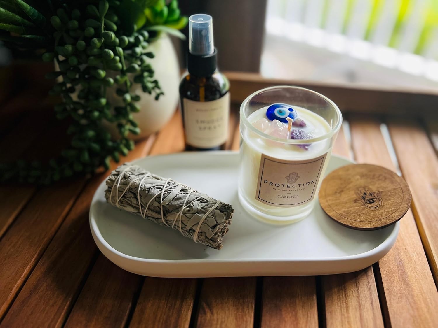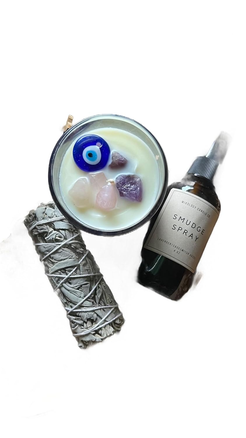 COMPLETE CLEANSING KIT: Includes white sage bundle, smudge spray, and evil eye candle for versatile energy clearing options