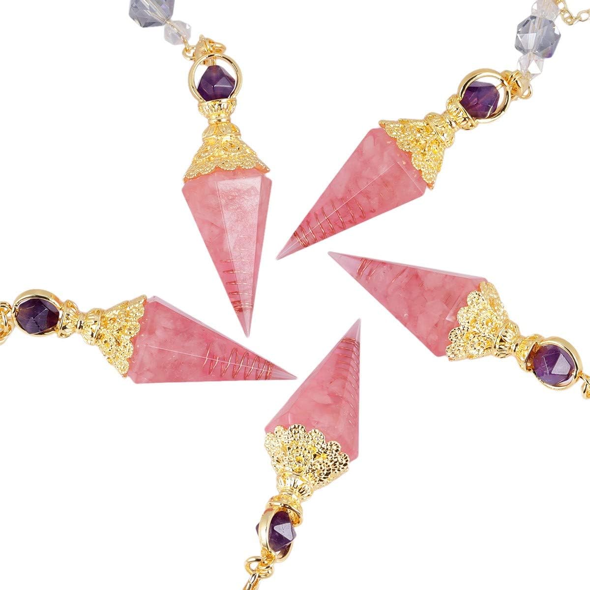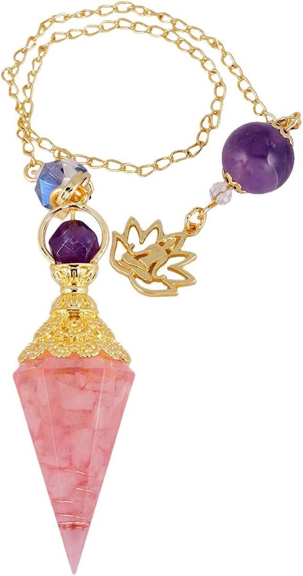 Rockcloud Healing Crystal Point Pendulum for Divination, Chakra Reiki Dowsing Balancing 6 Facet Pendant, Rose Quartz