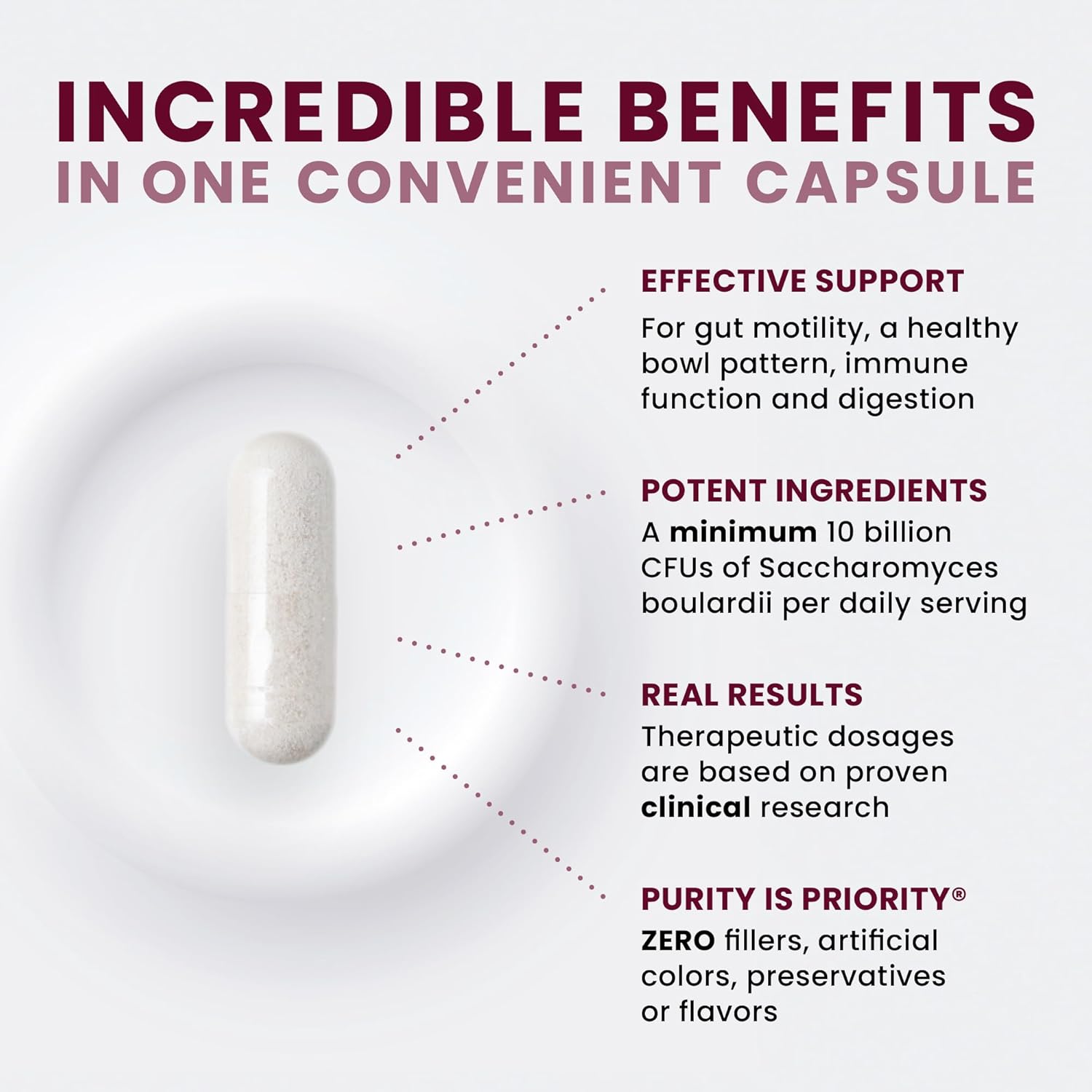 𝐂𝐀𝐍 𝐁𝐄 𝐔𝐒𝐄𝐃 𝐃𝐀𝐈𝐋𝐘:Pure TheraPro Rx Saccharomyces probiotic capsules deliver a minimum of 10 billion colony-forming units per daily serving (250mg per capsule). These probiotics supplement capsules quickly achieve high concentrations in the GI tract, then clear within 3-5 days after discontinuing use. Take 1 to 2 capsules daily in the morning or as directed by a healthcare provider.