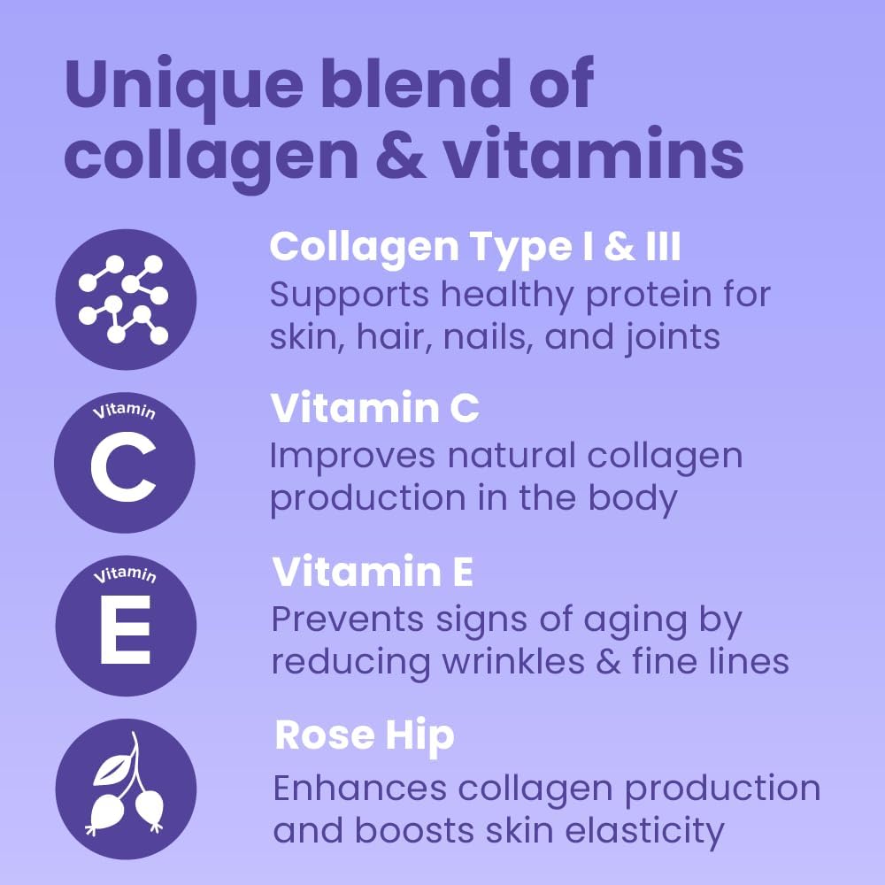 HYDROLYZED COLLAGEN: Collagen peptides type I & III stimulate the body to renew tissues and maintain radiant skin tone. Enhance joint flexibility, support bone strength, and promote healthier hair and nails with our premium collagen supplement. Perfect for those looking to improve their overall wellness and vitality.