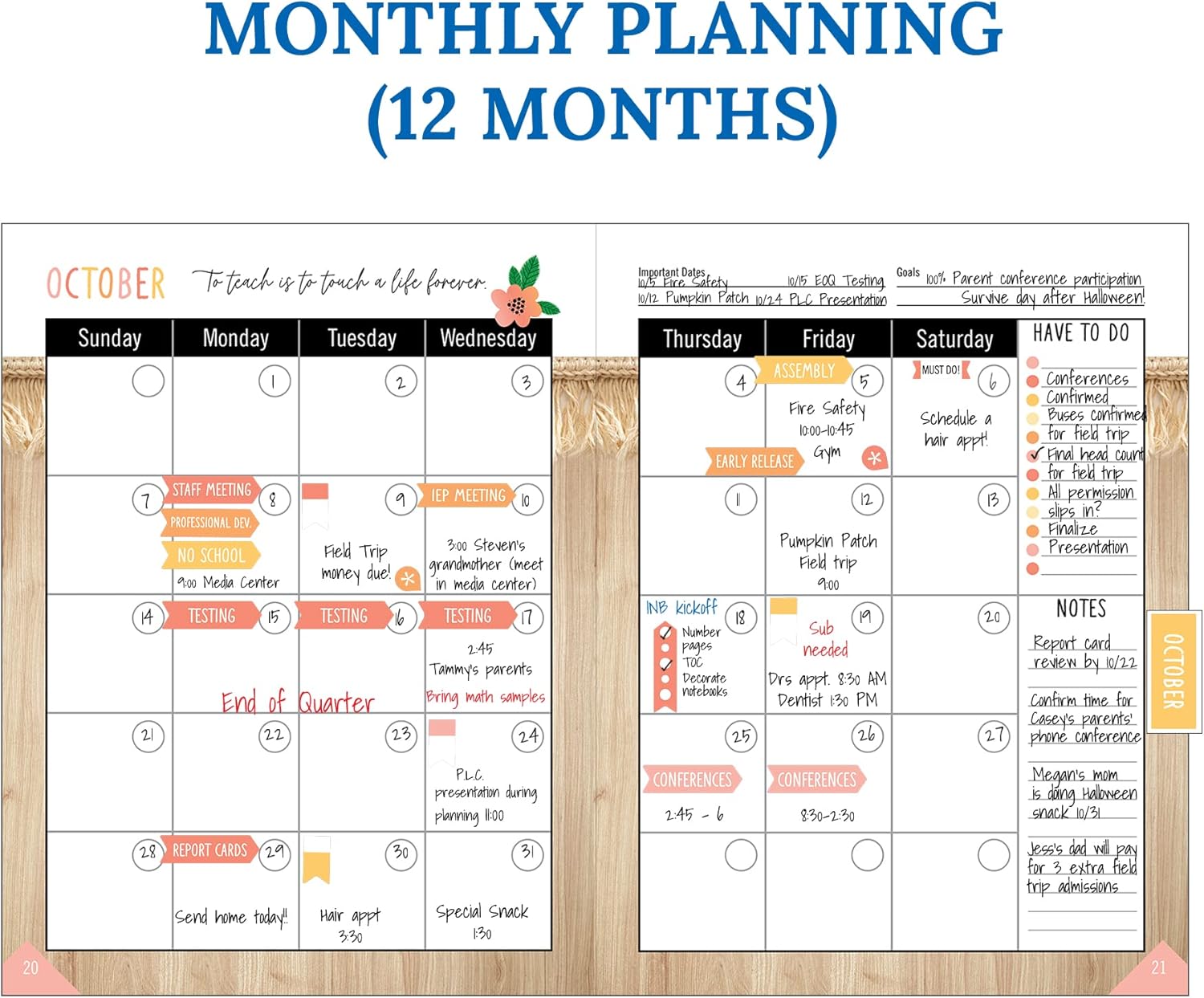 Classroom Organization: Use the checklists to organize grades, attendance, homework completion, birthdays, and more. The undated planner also features a notes section to keep track of important meetings, reminders, and more.
