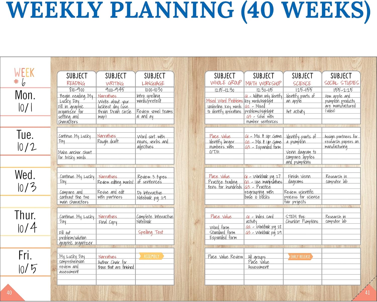 Goal-Setting Lesson Plan Book: Use the comprehensive information section in the daily planner to record substitute information, log communication, store contact information, create year-long plans and goals, and more.