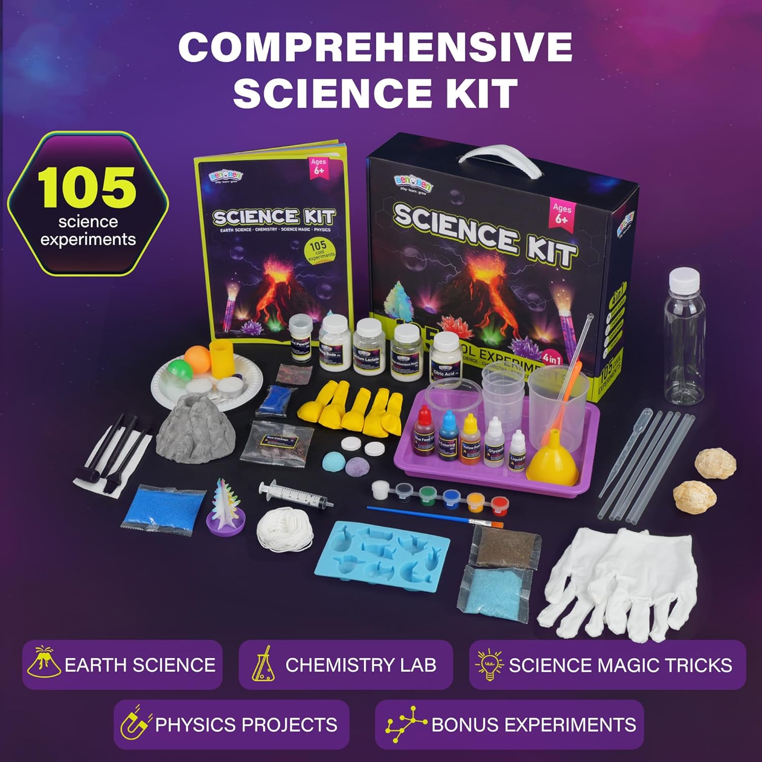 Spark your child’s curiosity and love for science with this comprehensive 105 science kit!