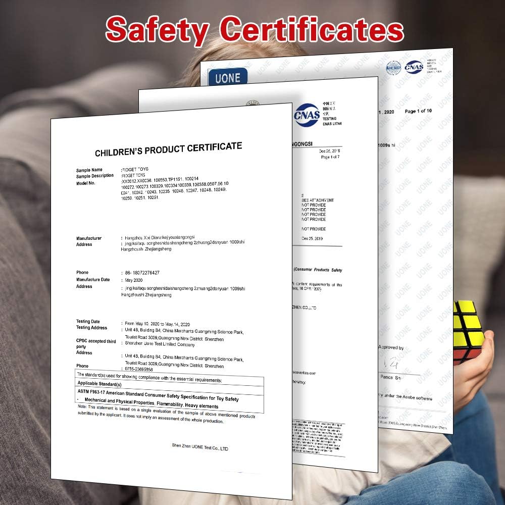【Respectable quality,Safe】Made of high-quality ABS material, non-toxic and odorless, the fidget toy set meets Europe and America Toy Safety Standards including ASTM/CPC/EN71. It offers a safe use for children with autism or ADHD and people with OCD or high stress, also help to focus their attention and alleviate their anxiety in a peaceful way