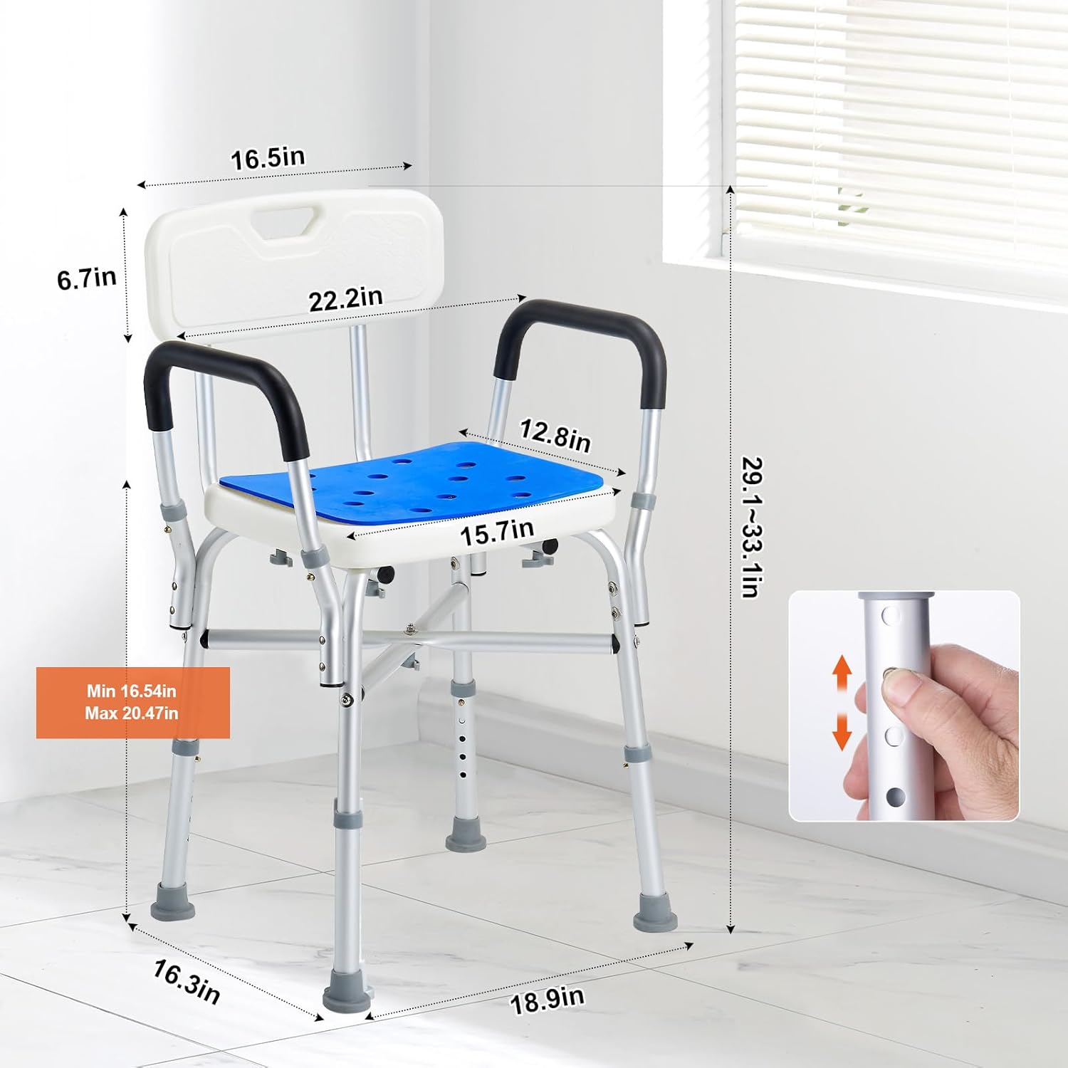 400LBS Stable Structure: With an upgraded X-shaped support and 10 reinforced bolts at the base, this chair ensures stability with a static load capacity of up to 400 lbs/181.4 kg. Made from PE and industrial-grade aluminum alloy, it’s rust & corrosion-resistant and It’s ideal for seniors, individuals with disabilities, pregnant women, and post-surgery patients.