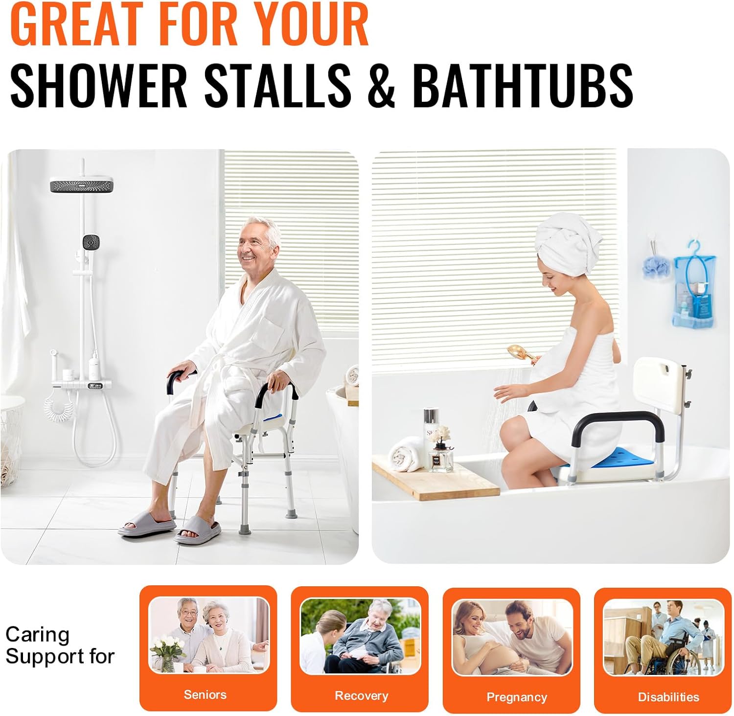Tool-Free Assembly: Say goodbye to complex assembly processes. Our bath chair is designed for simplicity. It’s easy to assemble without additional tools. It comes with clear instructions and a quick-screw design; assembly and disassembly are a breeze. You can assemble the armrests and backrests separately, depending on your needs. This allows for easy customization and flexibility.