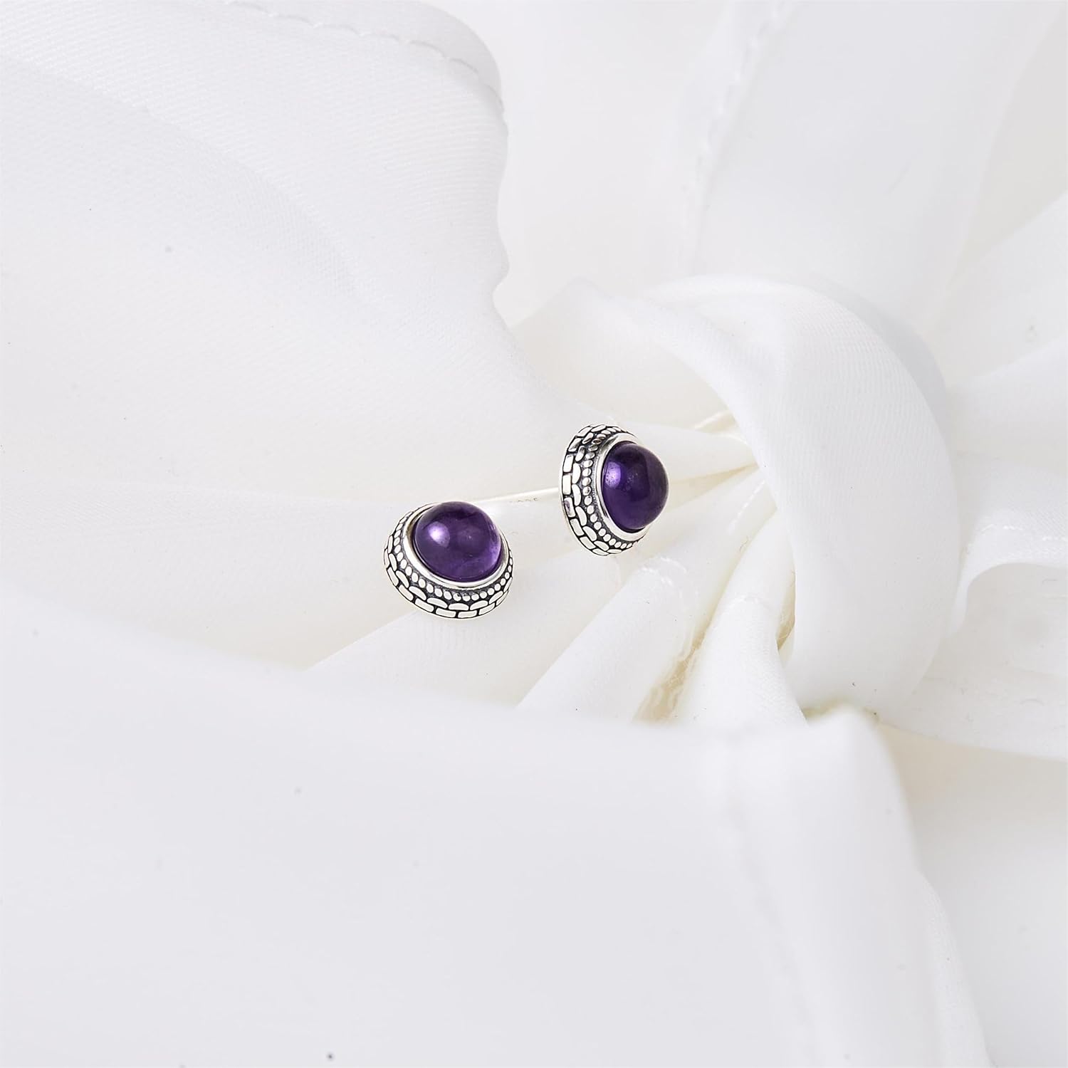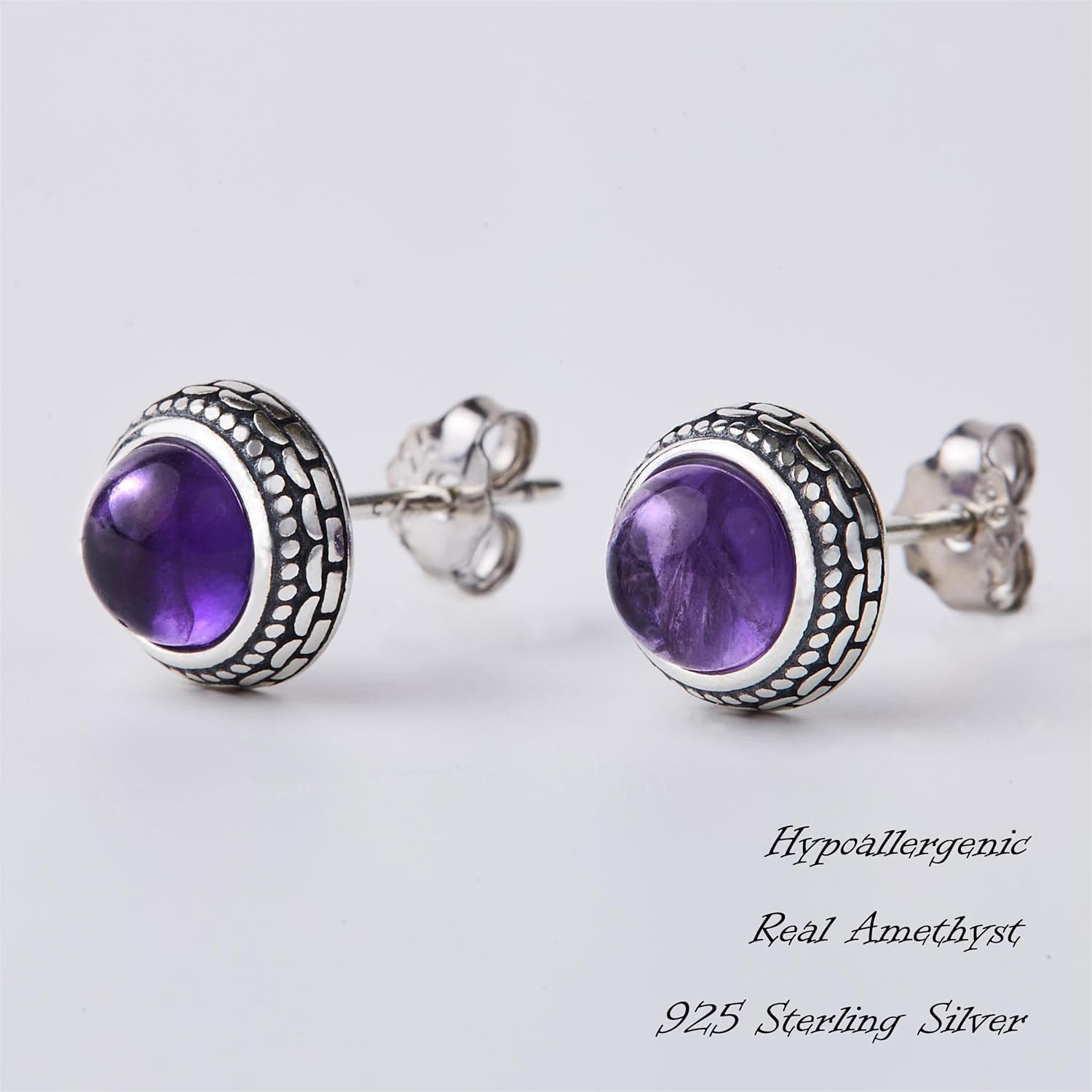 Small Genuine Purple Amethyst 925 Sterling Silver Hypoallergenic Earrings Stud Jewelry for Women Handmade Trendy Western Antiqued Silver Dainty Birthstone Crystal Gift for Women Young Lady