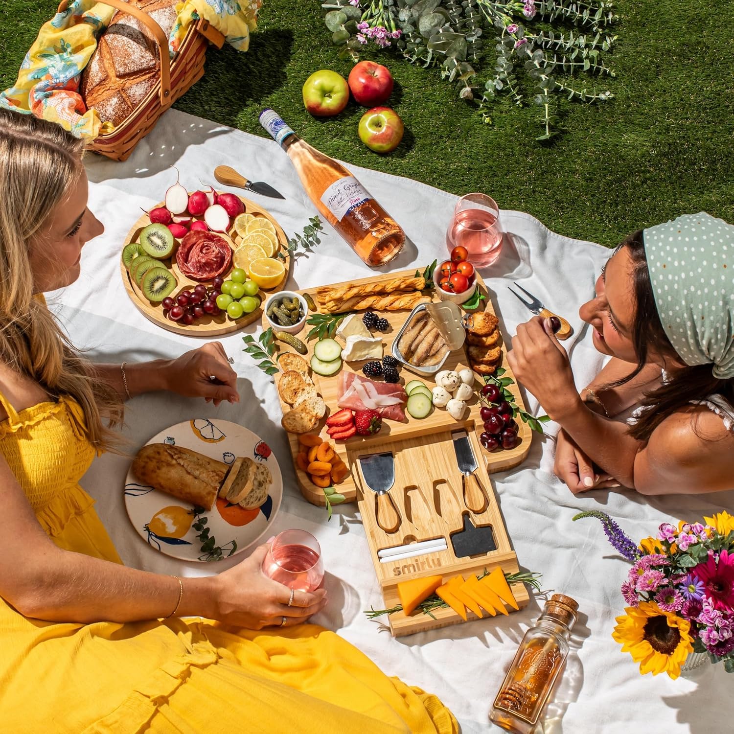 Smirly Charcuterie Board Set – Large Bamboo Cheese Board for Serving – House Warming Gifts New Home, Wedding & Bridal Shower Gift, Birthday Gift for Women