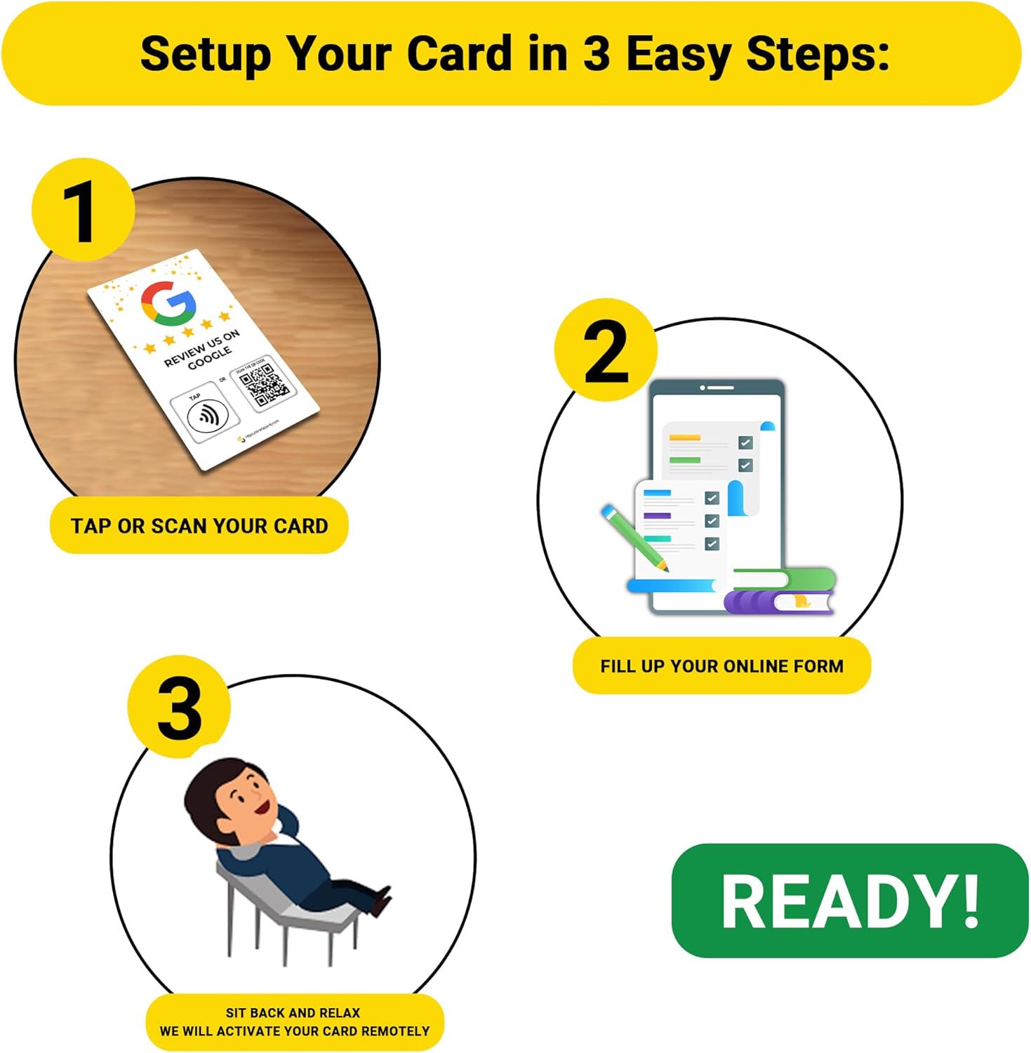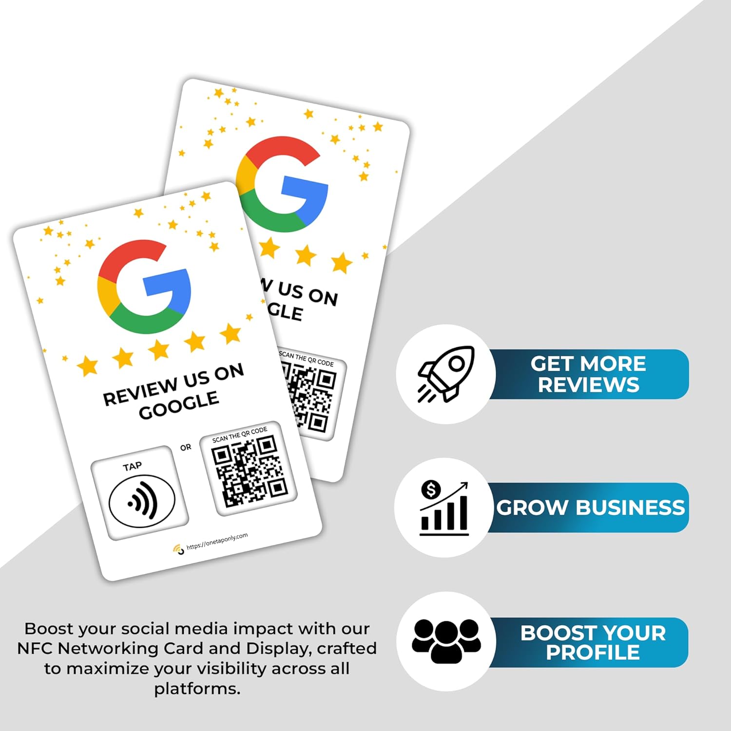 📊 ONE TAP REVIEW ENHANCEMENT TOOL: Invest in organic growth and garner more reviews instantly with our innovative NFC review enhancement tool. Use our tap to review cards to get real-time feedback and improve your services.
