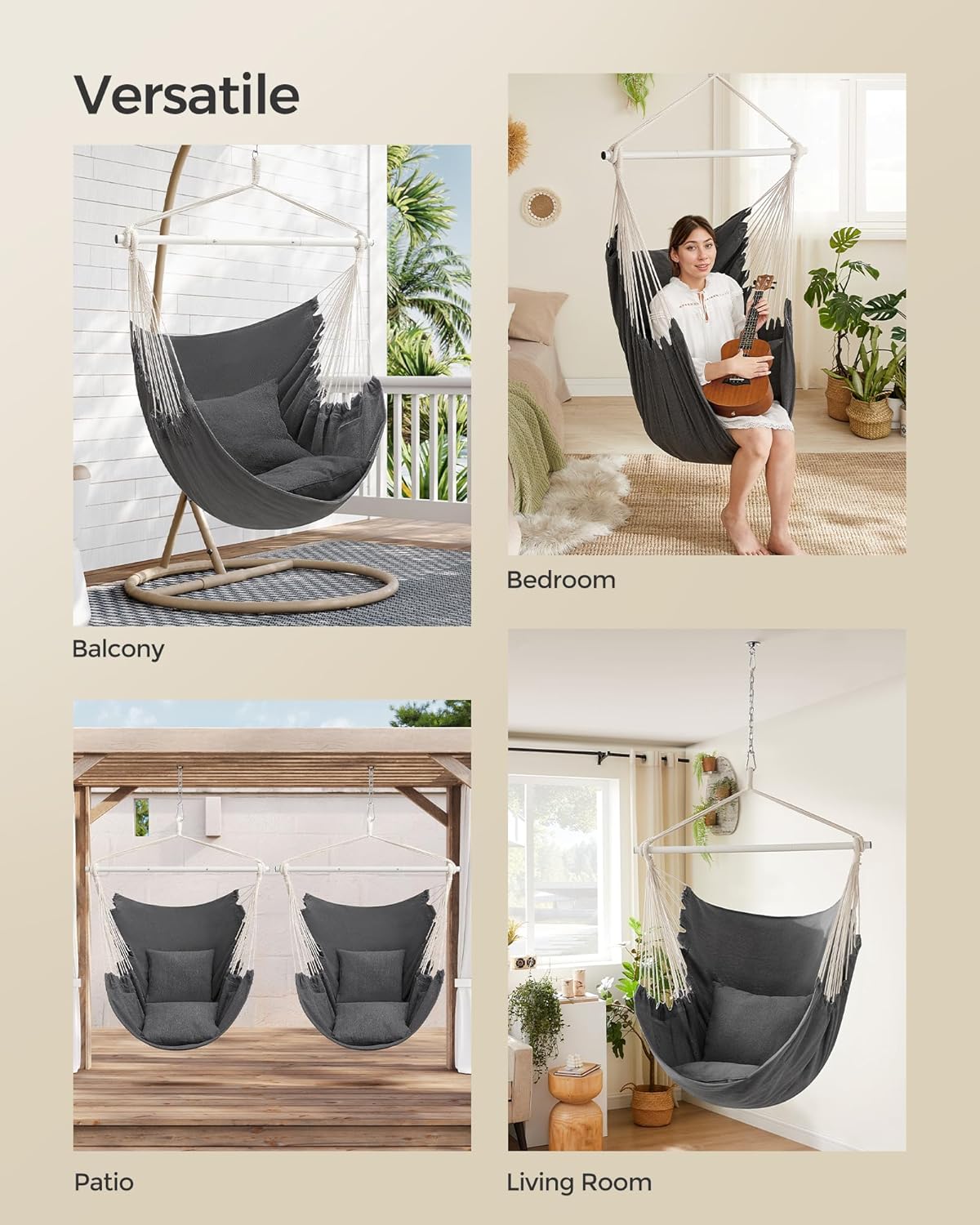 8 reviews for SONGMICS Hammock Chair, Load Capacity 500 lb, Hanging Chair with 2 Cushions, Large Hammock Swing with Chain and Pocket, for Indoor, Outdoor, Living Room, Bedroom, Slate Gray UGDC197G02