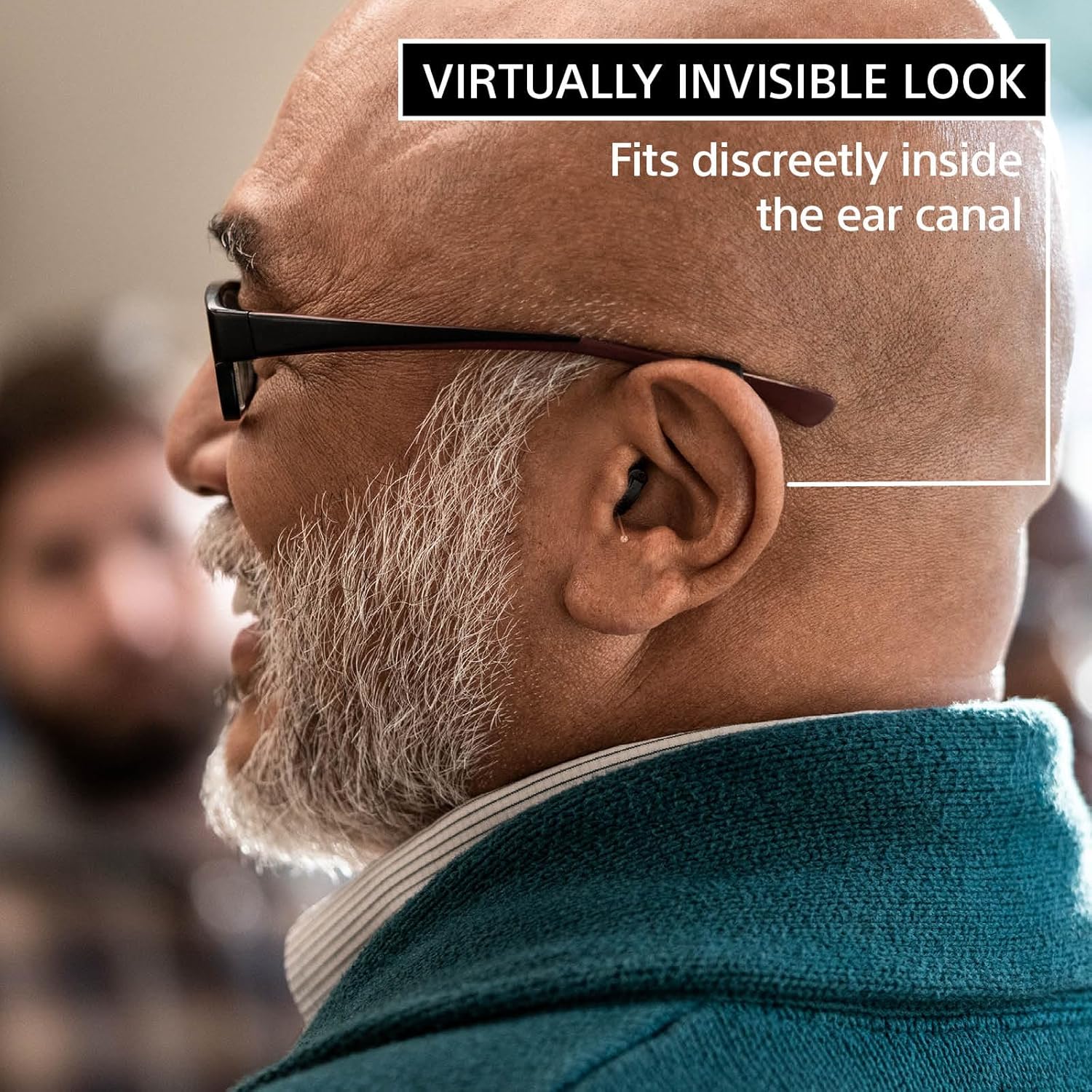 SLEEK, DISCREET, AND VIRTUALLY INVISIBLE: Thoughtfully designed to fit completely inside the ear canal, offering prescription-grade sound quality in a compact design that stays under the radar.