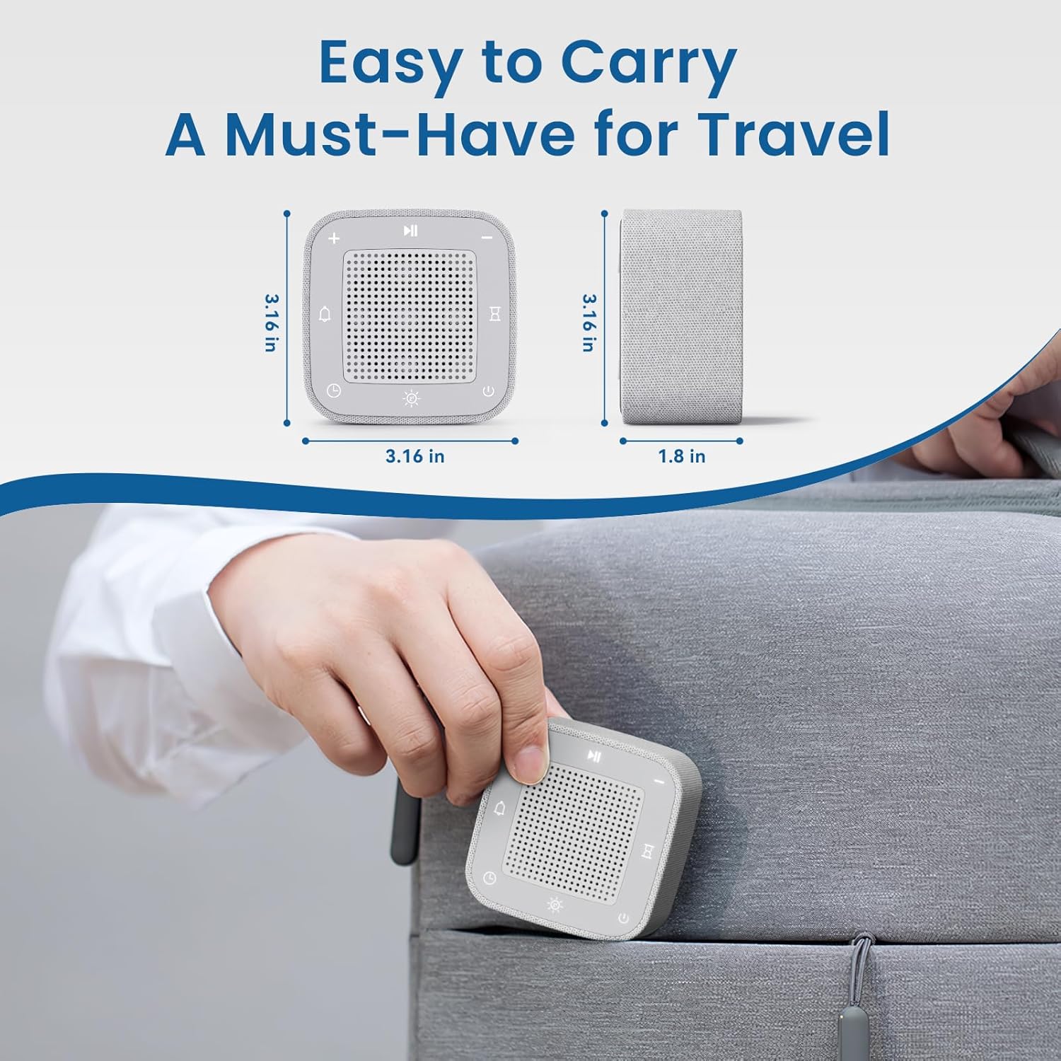 I like the small size that makes it portable. Great for traveling. There are 32 sounds to choose from. I gravitates to about 5 of them. This sound machine helps me to concentrate and block out noises. Like that it shows the time. Easy to set up with bluetooth capability and convenient to use.