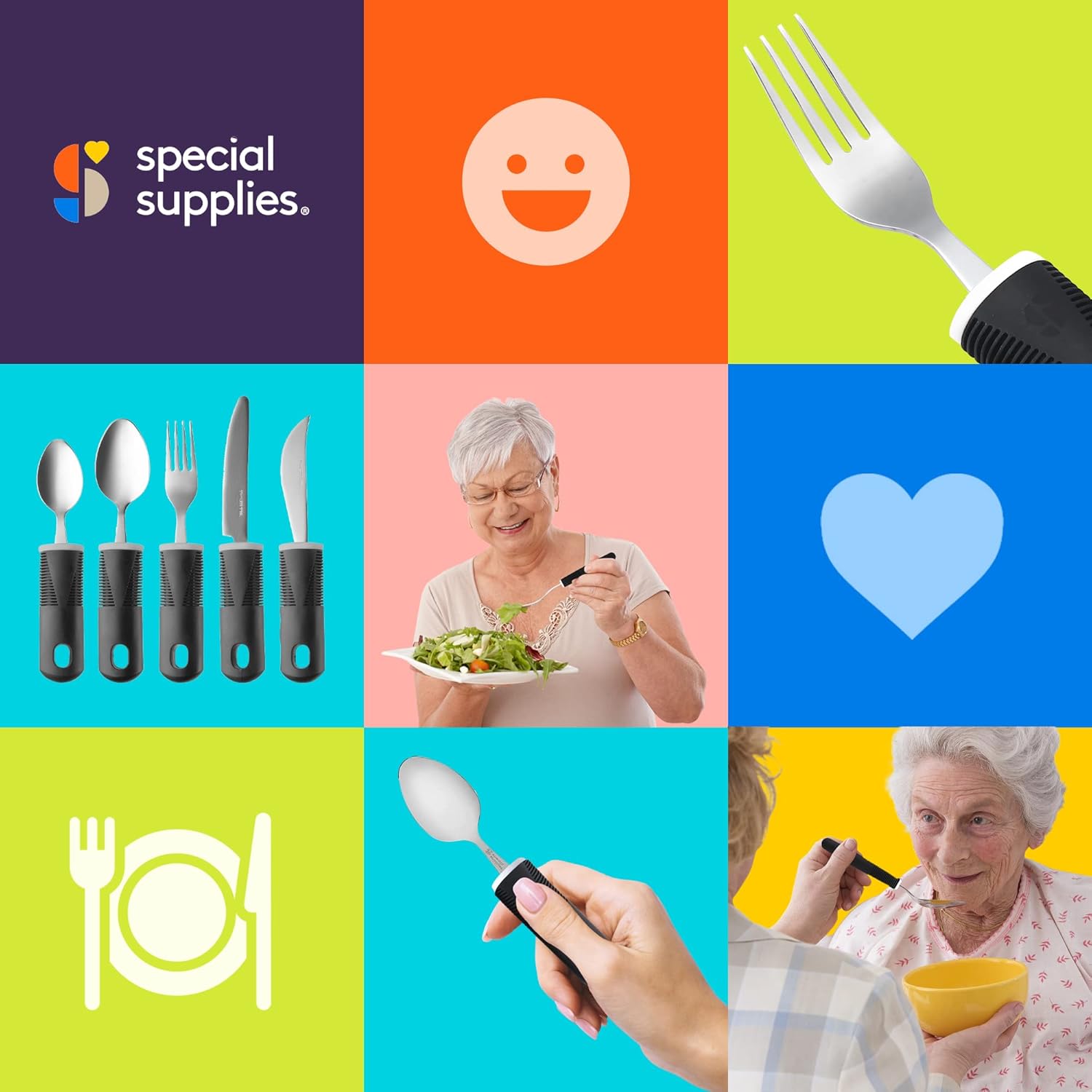Multiple Colors Available – Easy to clean and ultra-durable, these adaptive eating utensils also come in multiple colors to better match your kitchen.