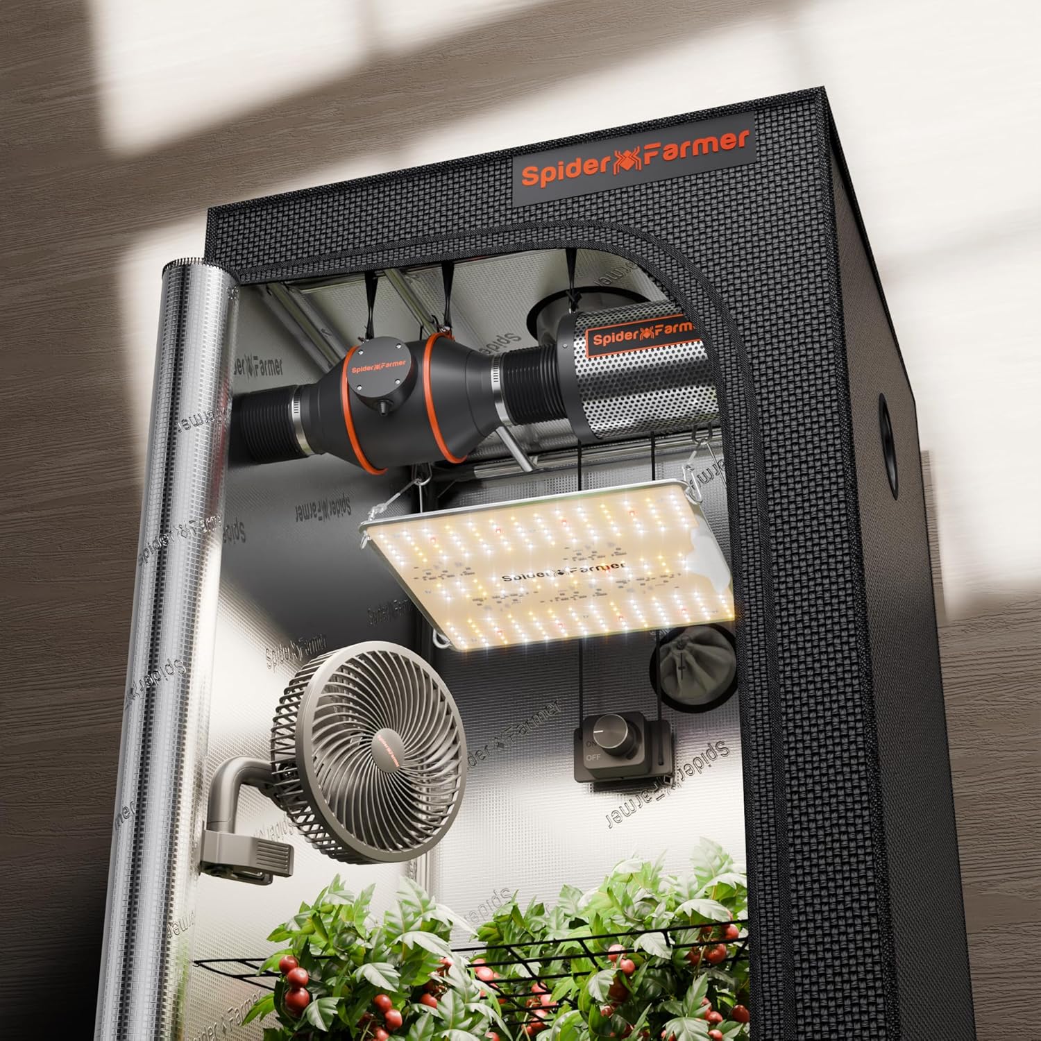 1 review for Spider Farmer Grow Tent Kit 2x2x5ft Complete System, SF1000D Samsung Diodes Full Spectrum LED Grow Light 24″X24″X55″ Indoor 1680D Mylar Tent with 4″ Ventilation System & 6” Clip Fan